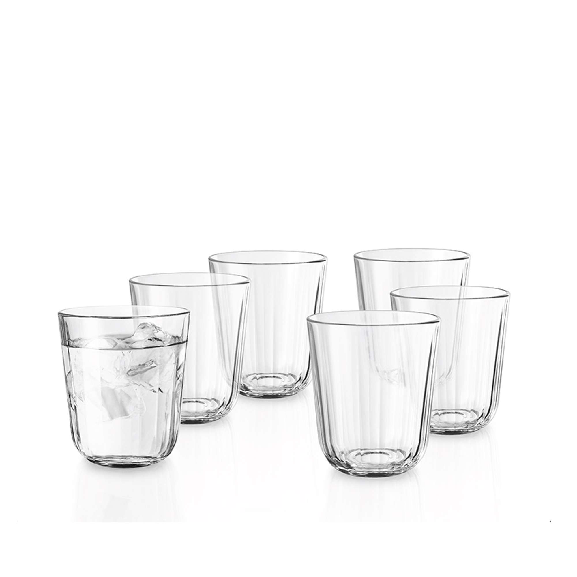 Glassene komplimentere enhver borddækning lige fra det rustikke til det lette og elegante. Alle glas er fremstillet i hærdet glas og tolererer både kold og varm indhold op til 130 grader.
