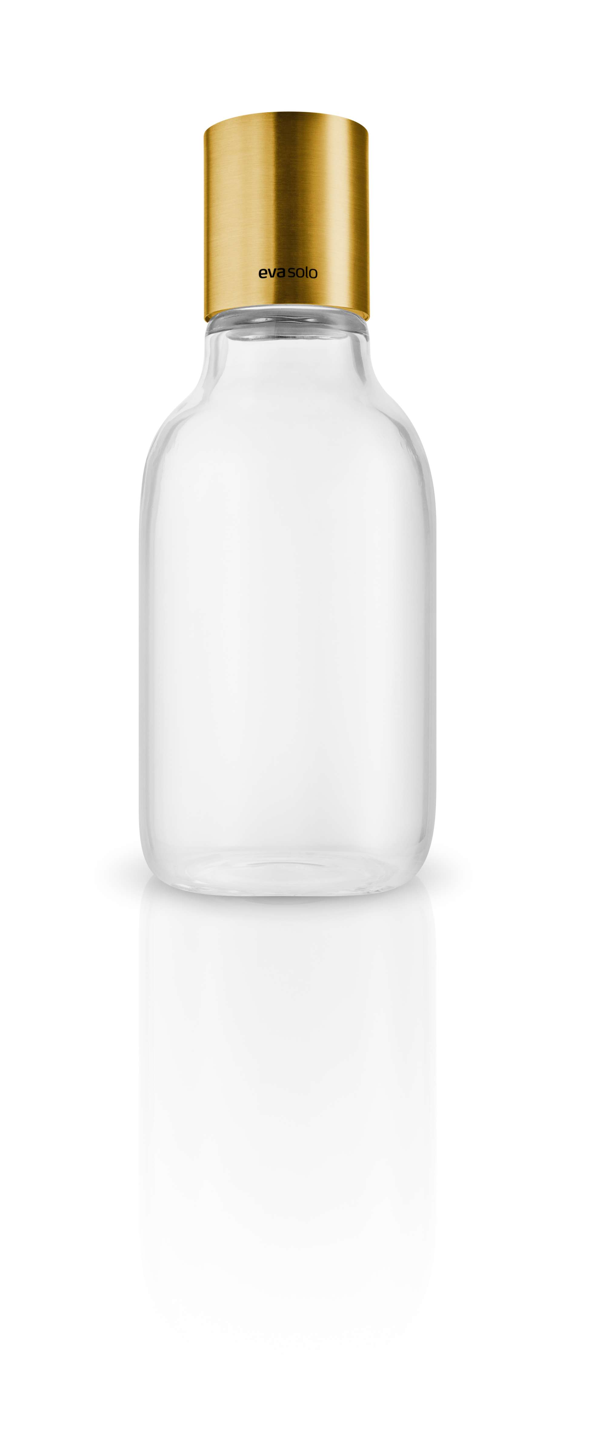 - Enkelt design i glas og top i rustfrit stål med PVD belægning i messing look, der ikke skal pudses