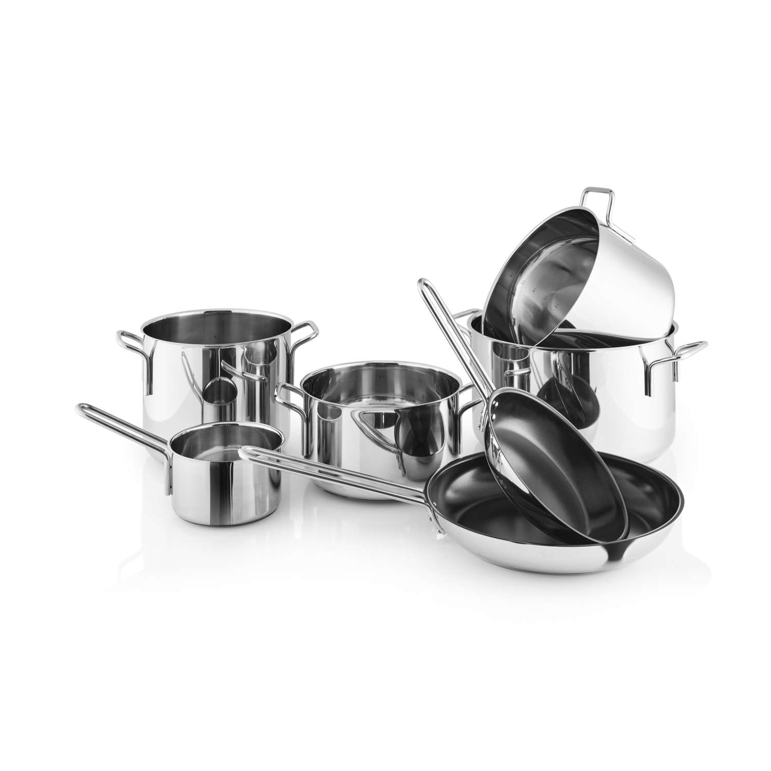 - Indeholder: Kasserolle 1,1 l, Gryde 3,6 l, Gryde 4,8 l, Gryde 6,5 l, Gryde 9 l, Stegepande Ø20 cm, Stegepande Ø28 cm