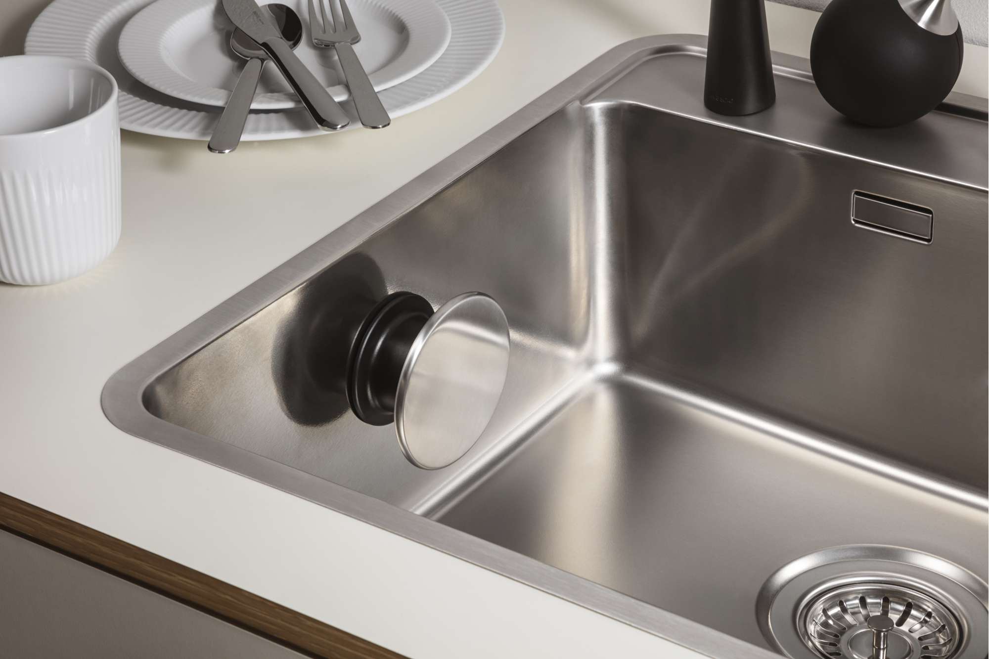 Slut med karklude, der ligger og flyder. Værn om den gode køkkenhygiejne og giv kluden sin egen funktionelle tørreplads diskret og ude af syne på indersiden af vasken. Holderen sidder fast med en stærk sugekop og monteres nemt. Sæt blot sugekoppen på vaskens side og drej metalhjulet. Afmonter ved at dreje metalhjulet modsat. Holderen passer på vaske med glat eller blank overflade.