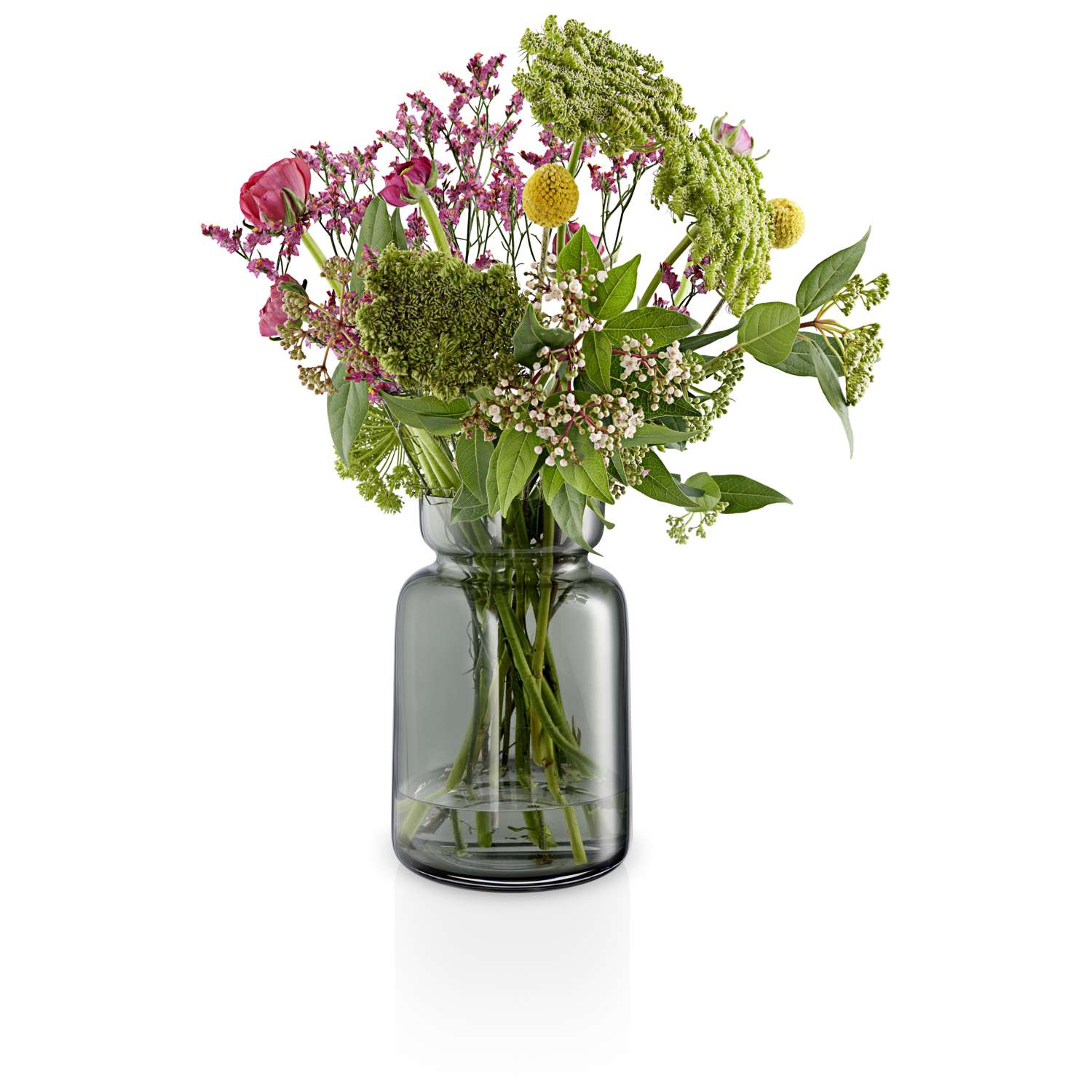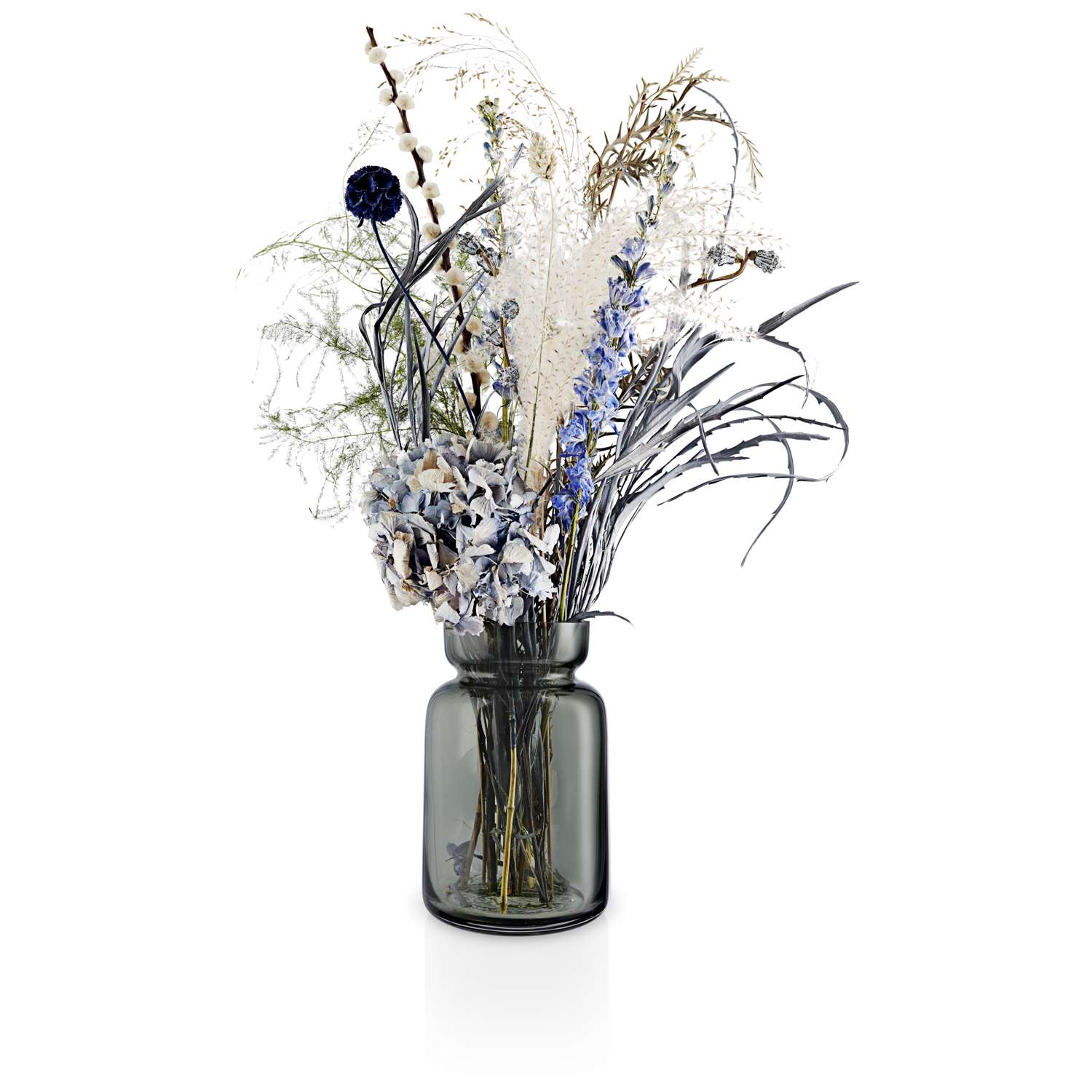 Fremhæv årstidens smukke glød med en buket blomster eller dyrk tidens trend og sæt en buket tørrede blomster i en af de mundblæste Silhouette vaser. Med sæsonens skønne farver og de røgfarvede glasvaser kan man nemt lege med indretningen i dit hjem.