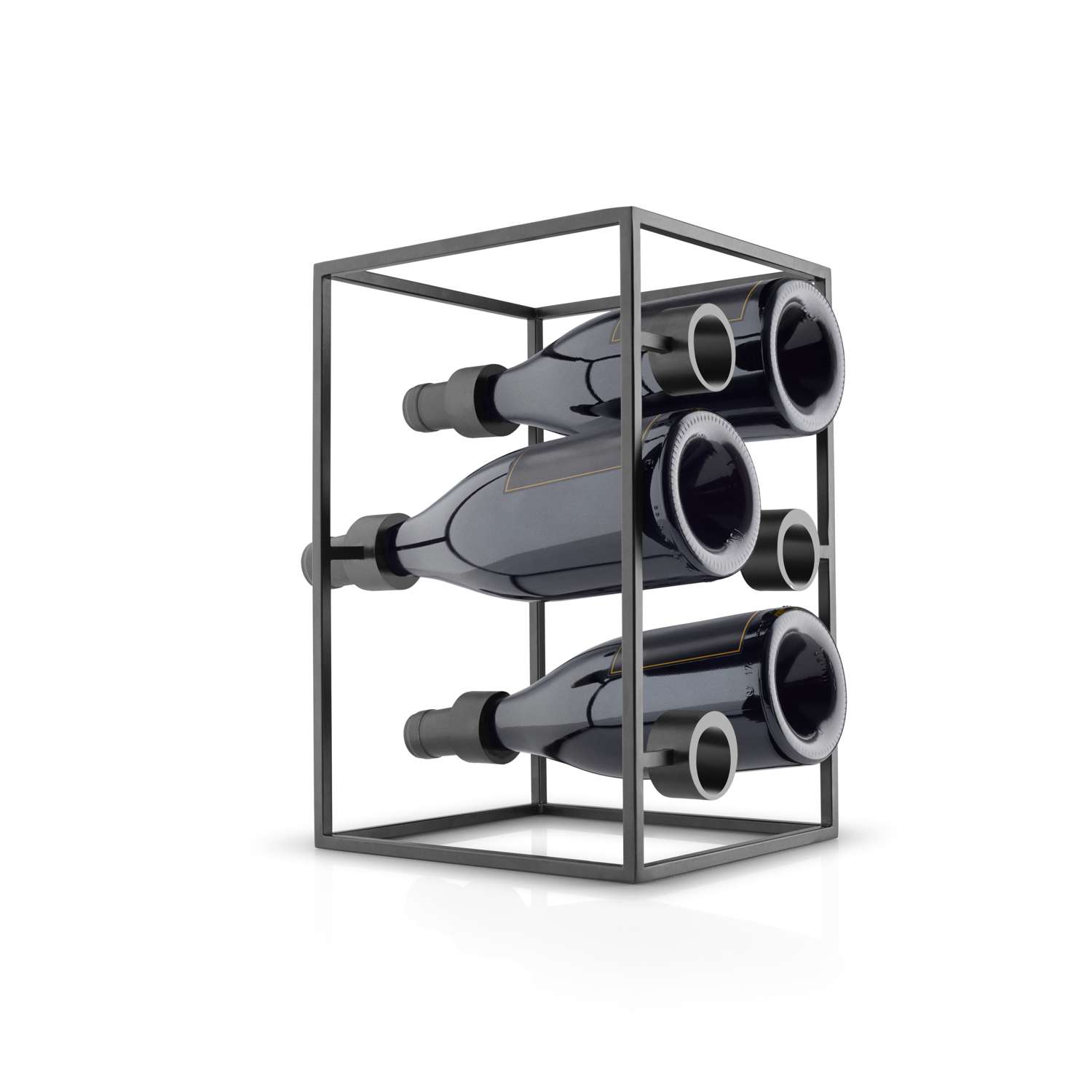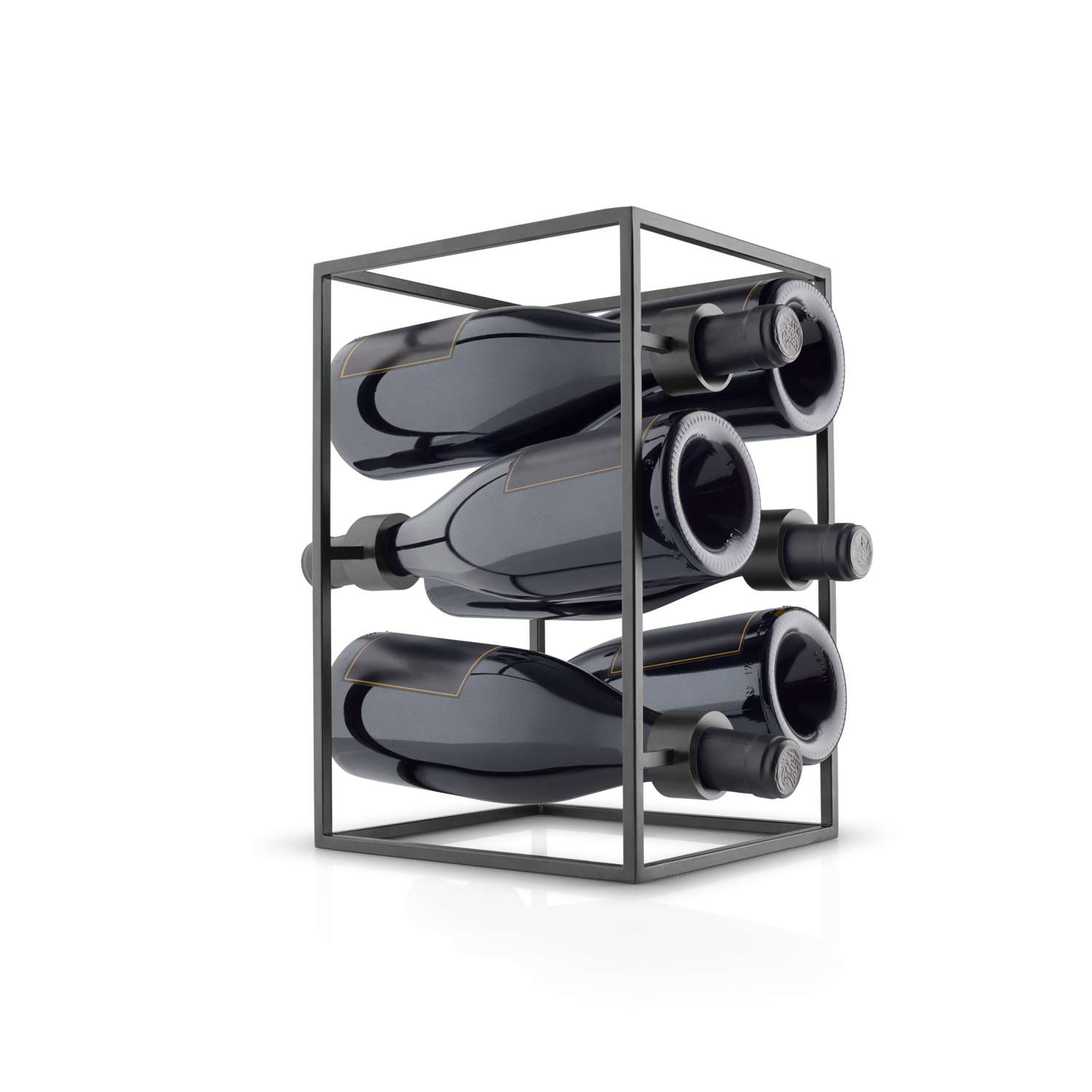 Den skulpturelle vinkube er robust og holder sikkert på flaskerne og fremstår samtidig med et luftigt og enkelt design. Vinkuben er perfekt til udstilling af udvalgte vine og passer til de fleste vinflasketyper.