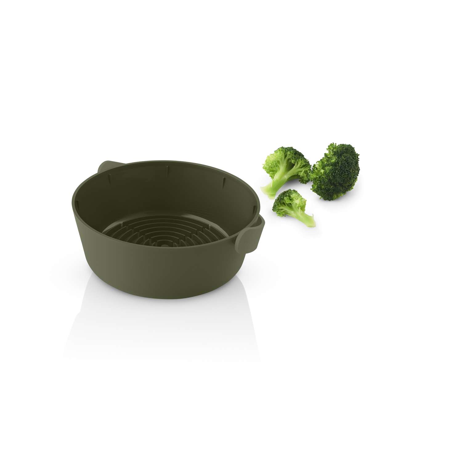 Beim Dämpfen lässt sich die Temperatur leichter steuern und all die guten Vitamine im Gemüse werden bewahrt. Aufgrund des schlichten, stilvollen Designs ist der Dämpfer so dekorativ, dass man ihn auch zum Servieren auf den Tisch stellen kann. Dank des praktischen, nicht wärmeleitenden Henkels benötigt man bei der Herausnahme aus der Mikrowelle keine Topflappen.