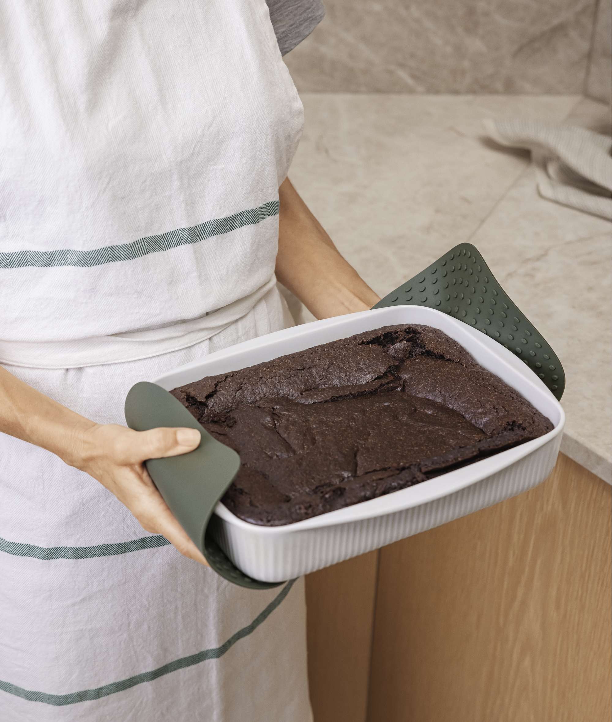 Dank der rundum angebrachten, flachen Kante liegt die Form gut in der Hand, und sie ist nicht nur zur Verwendung im Ofen und auf dem Grill, sondern auch zur Aufbewahrung im Tiefkühler geeignet.