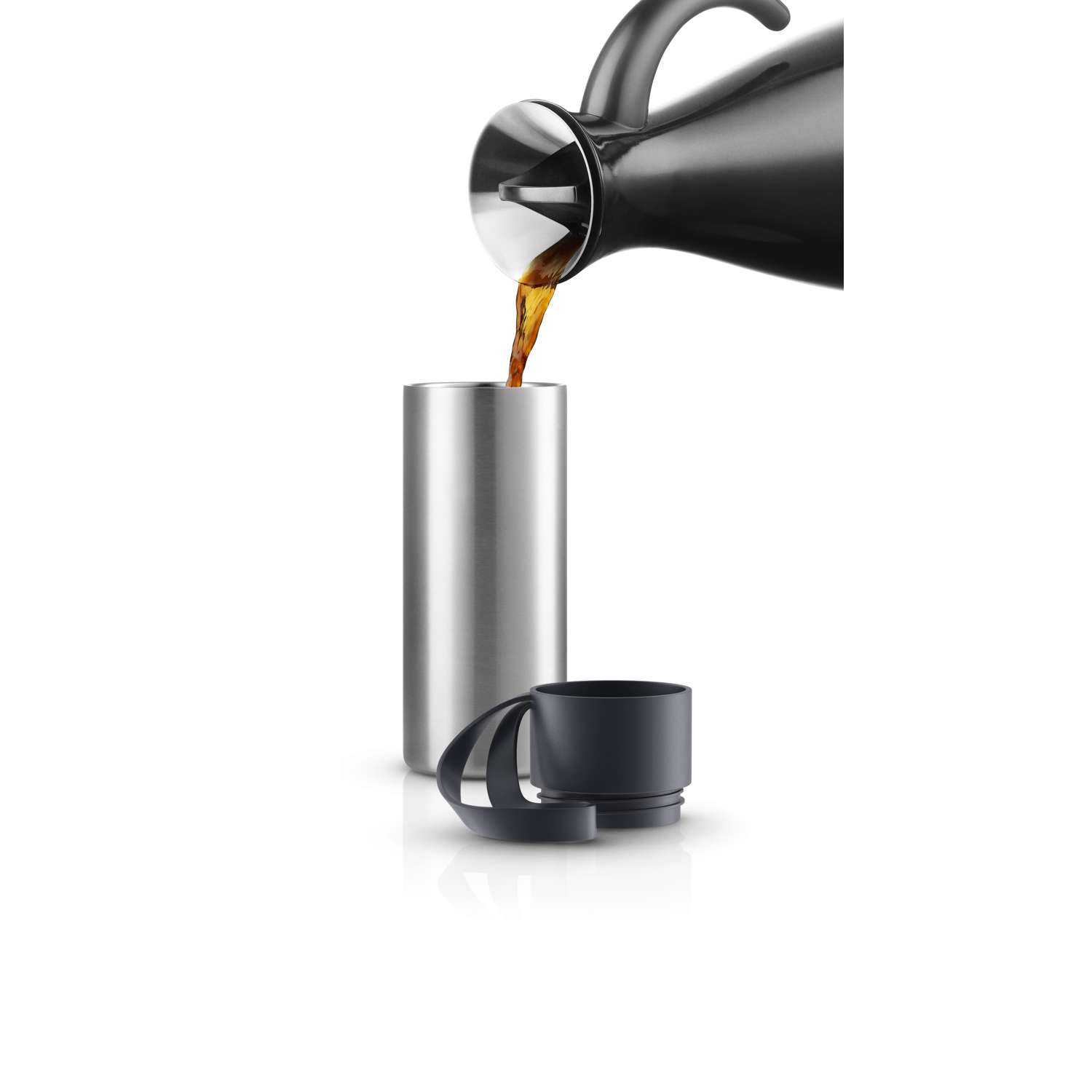 Die wirksame doppelwandige Vakuumisolierung hält den Kaffee bis zu 6 Stunden warm und Kaltgetränke bis zu 12 Stunden frisch und kühl. Mit dem praktischen Silikonriemen kann der Becher ganz einfach mitgenommen werden, egal, wohin es geht.