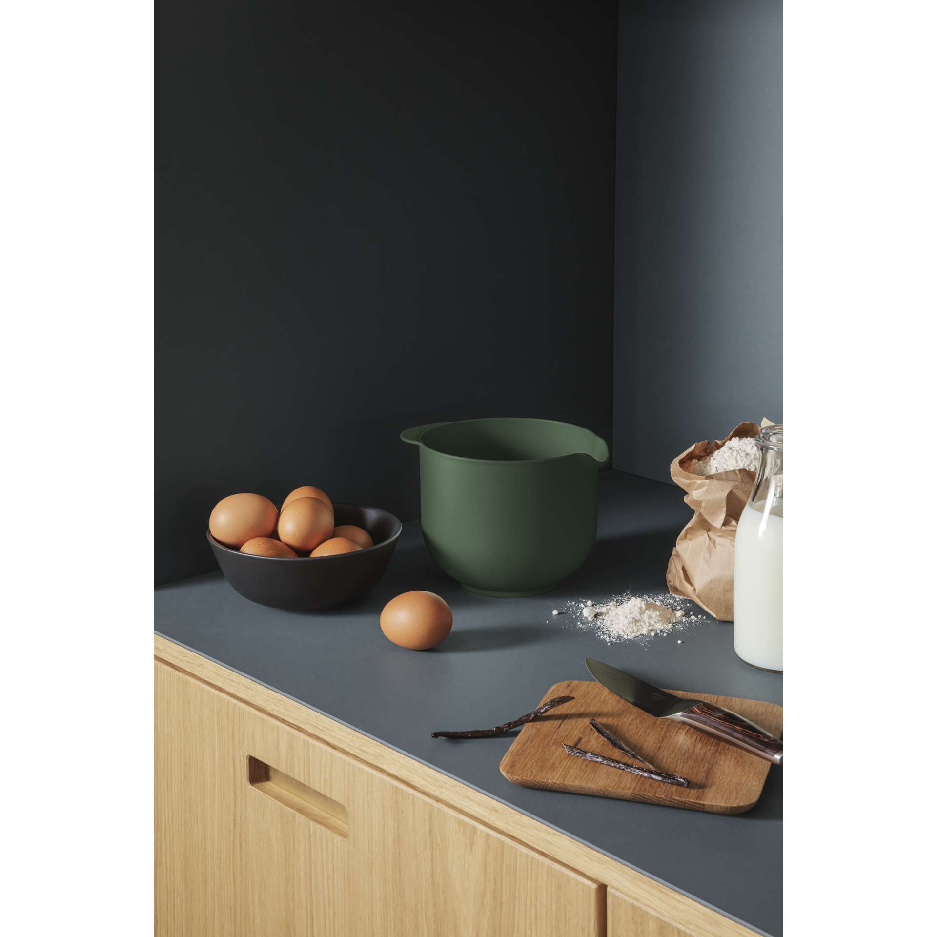 The bowl is also fitted with a rubber edge at its base for counter-top stability. Use the Eva mixing bowl as bakeware or as a bain-marie – the bowl is heatproof up to 100 °C. The bowl is also freezer-safe, microwave-safe and dishwasher-safe.