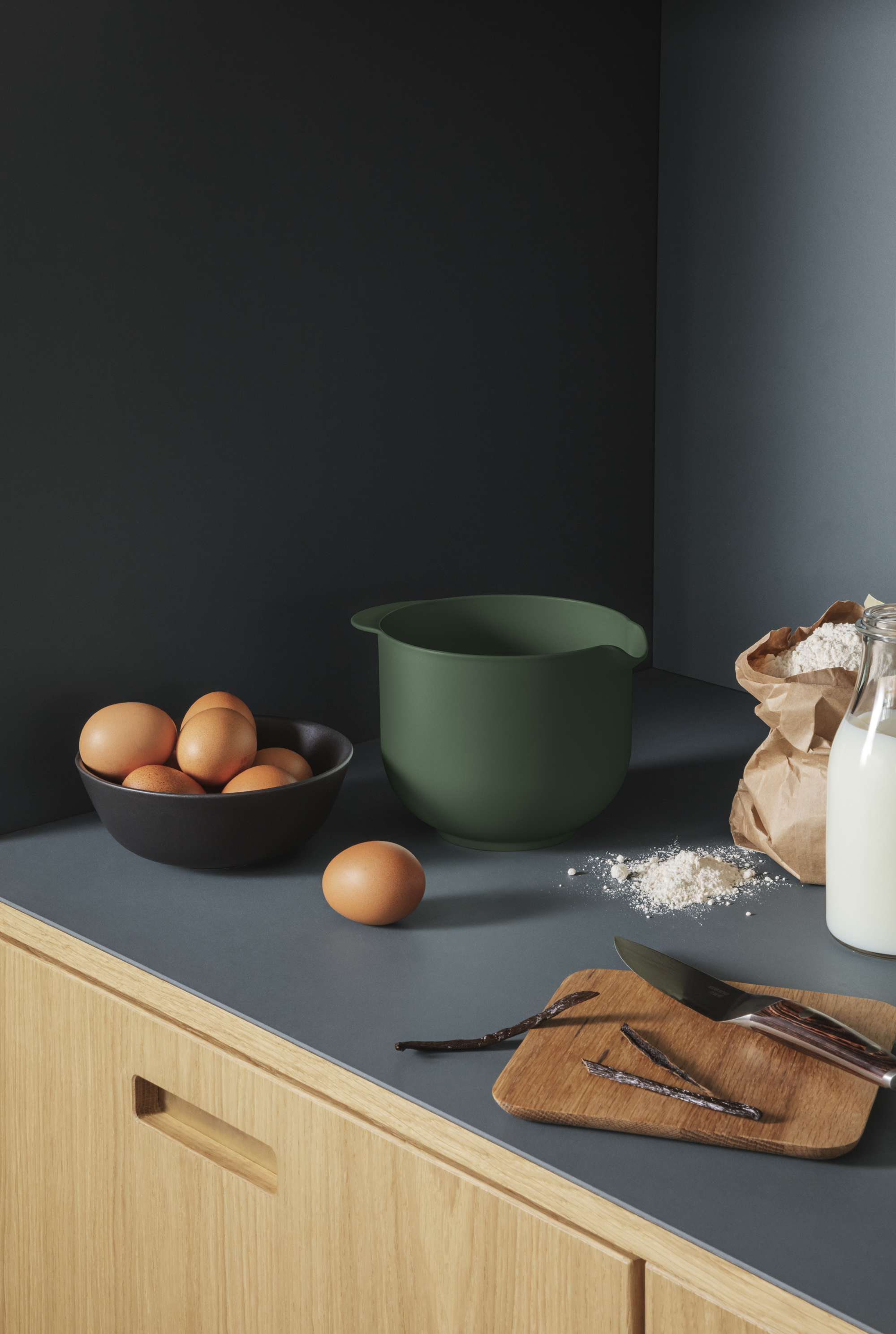 The bowl is also fitted with a rubber edge at its base for counter-top stability. Use the Eva mixing bowl as bakeware or as a bain-marie – the bowl is heatproof up to 100 °C. The bowl is also freezer-safe, microwave-safe and dishwasher-safe.