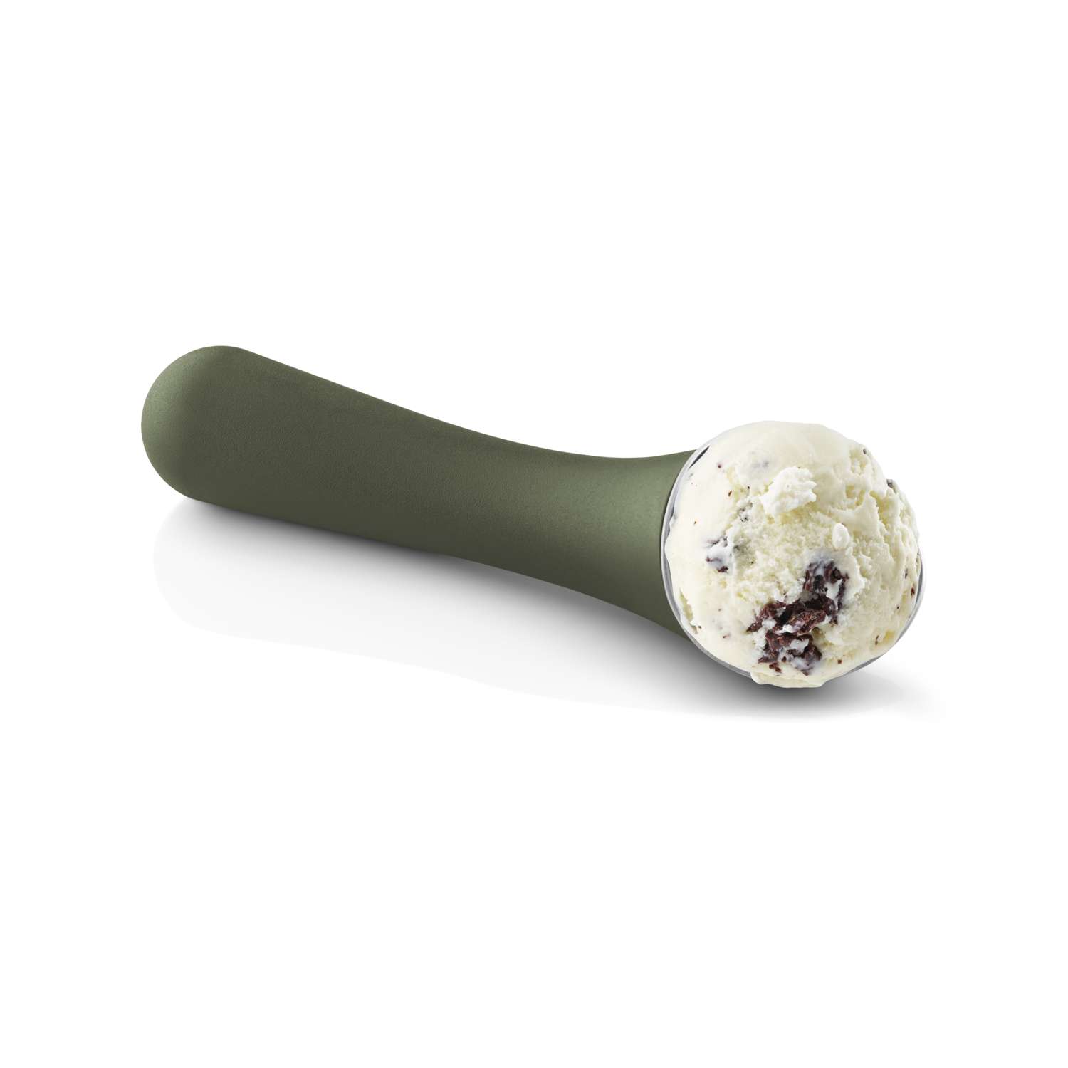 Scoop and portion even rounds of ice cream, purée or other soft foods