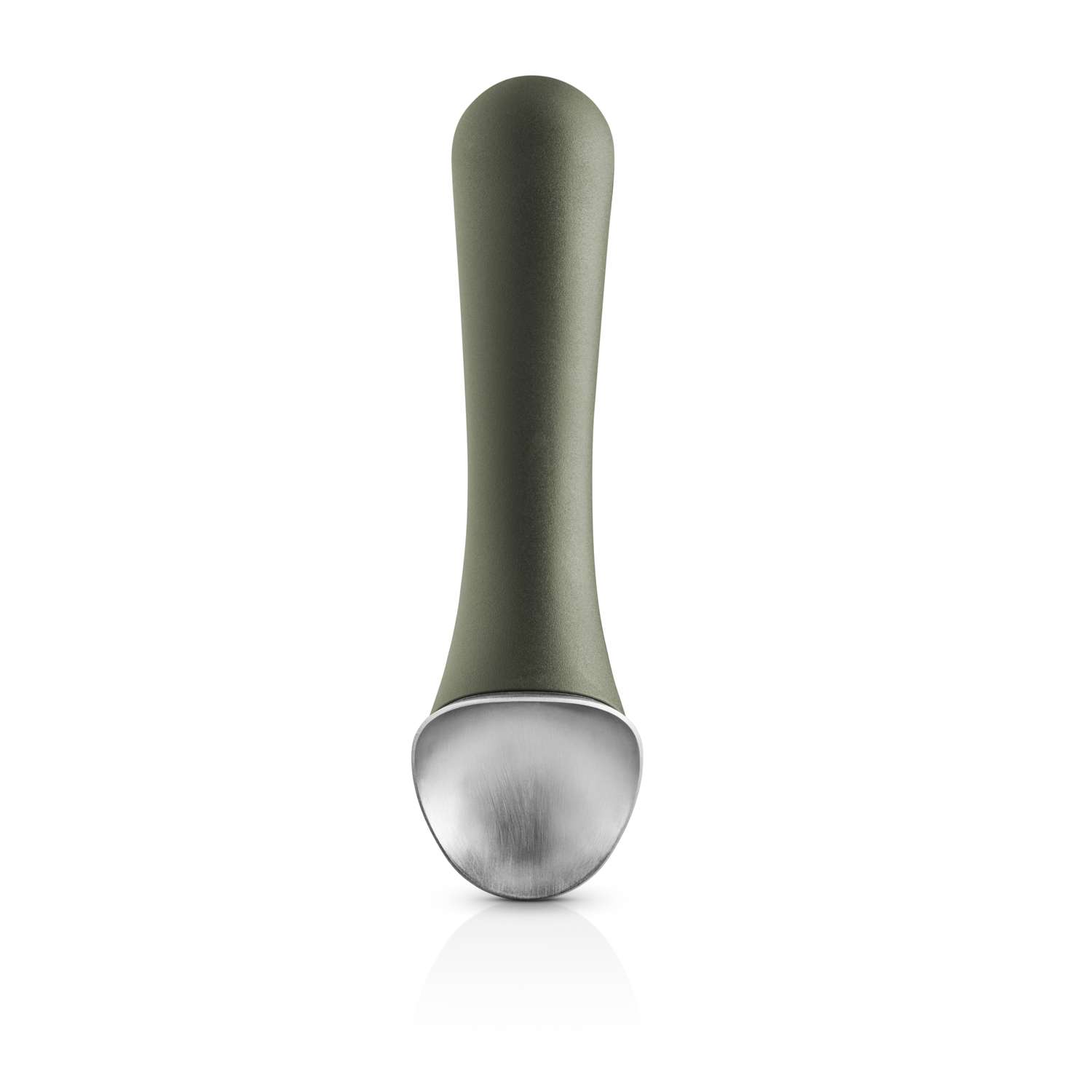 The Green tools Disher is a versatile utensil for scooping and portioning ice cream, purée and other soft foods. Use it for dishing out elegant dessert servings, portioning muffin batter and cookie dough or for creating decorative scoops of fruit and purée for both sweet and savoury dishes. The sturdy stainless steel disher head carves out scoops of ice cream effortlessly, while the ergonomic handle is comfortable to hold. Dishwasher-safe.