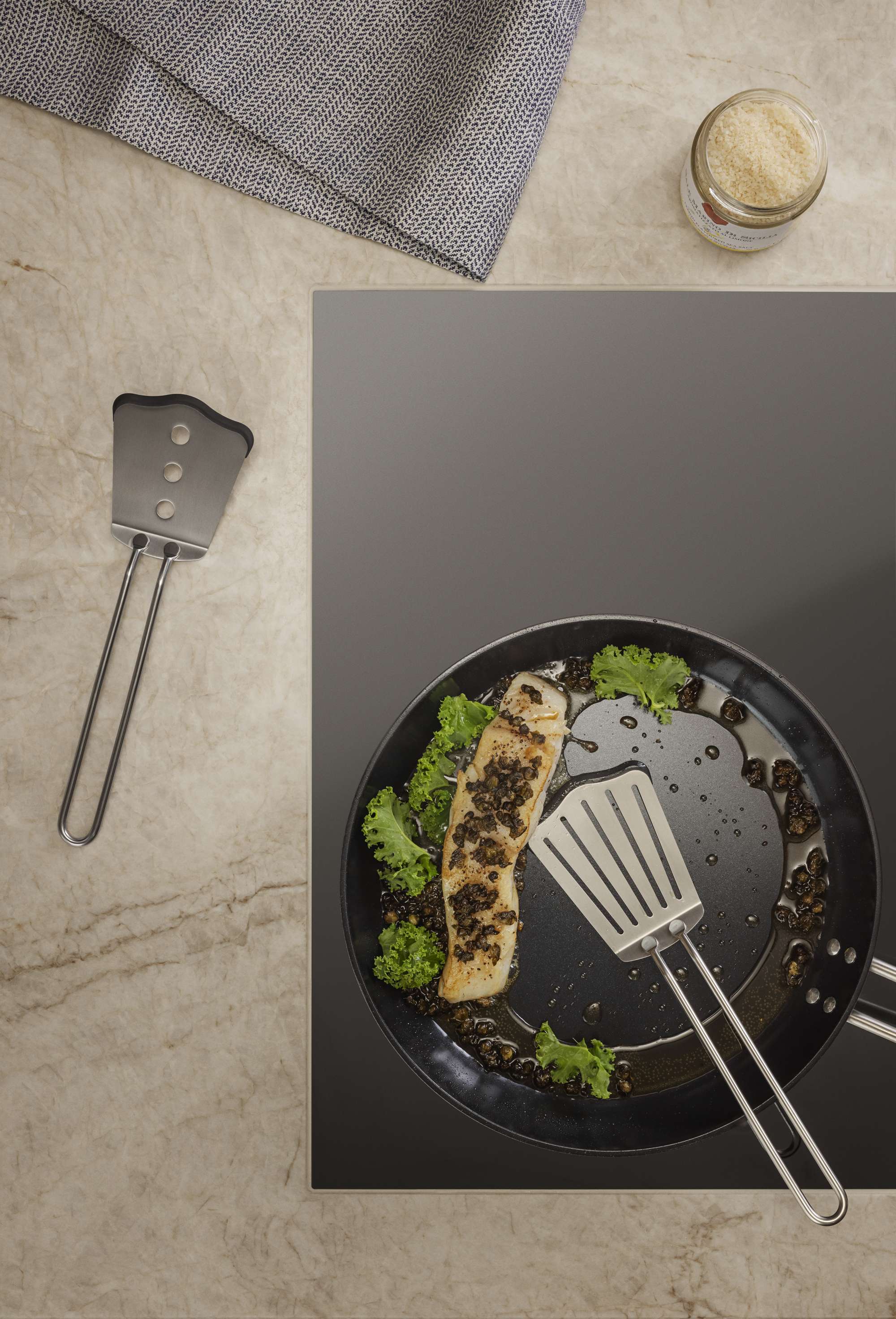 This spatula is an indispensable kitchen utensil – perfect for flipping, stirring, lifting and plating. The flat tip with its angled edges makes it easy to slip under flat foods like pancakes, fried eggs and fish fillets. The silicone tip makes the spatula gentle on surfaces so you avoid scratching and damaging your cookware. Made of stainless steel, it is resistant to high temperatures and virtually indestructible. The spatula is dishwasher-safe.