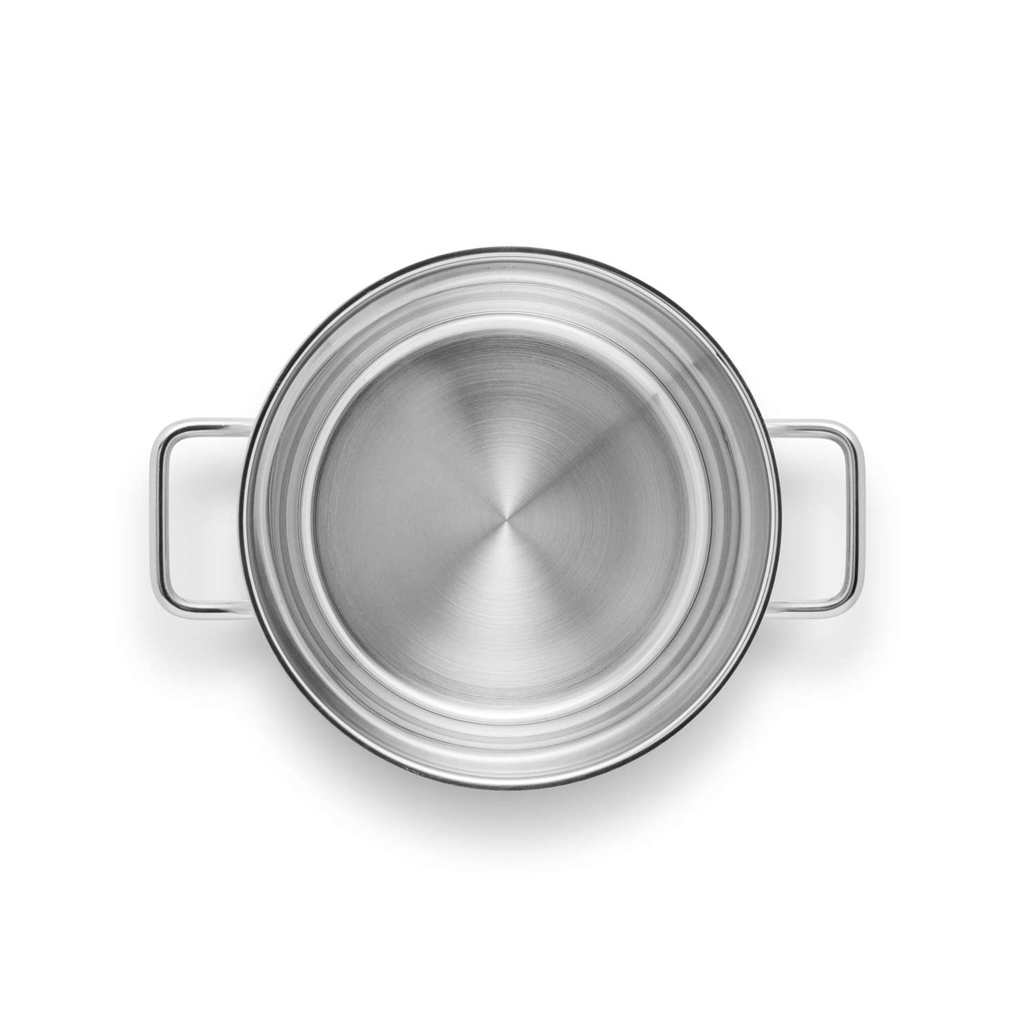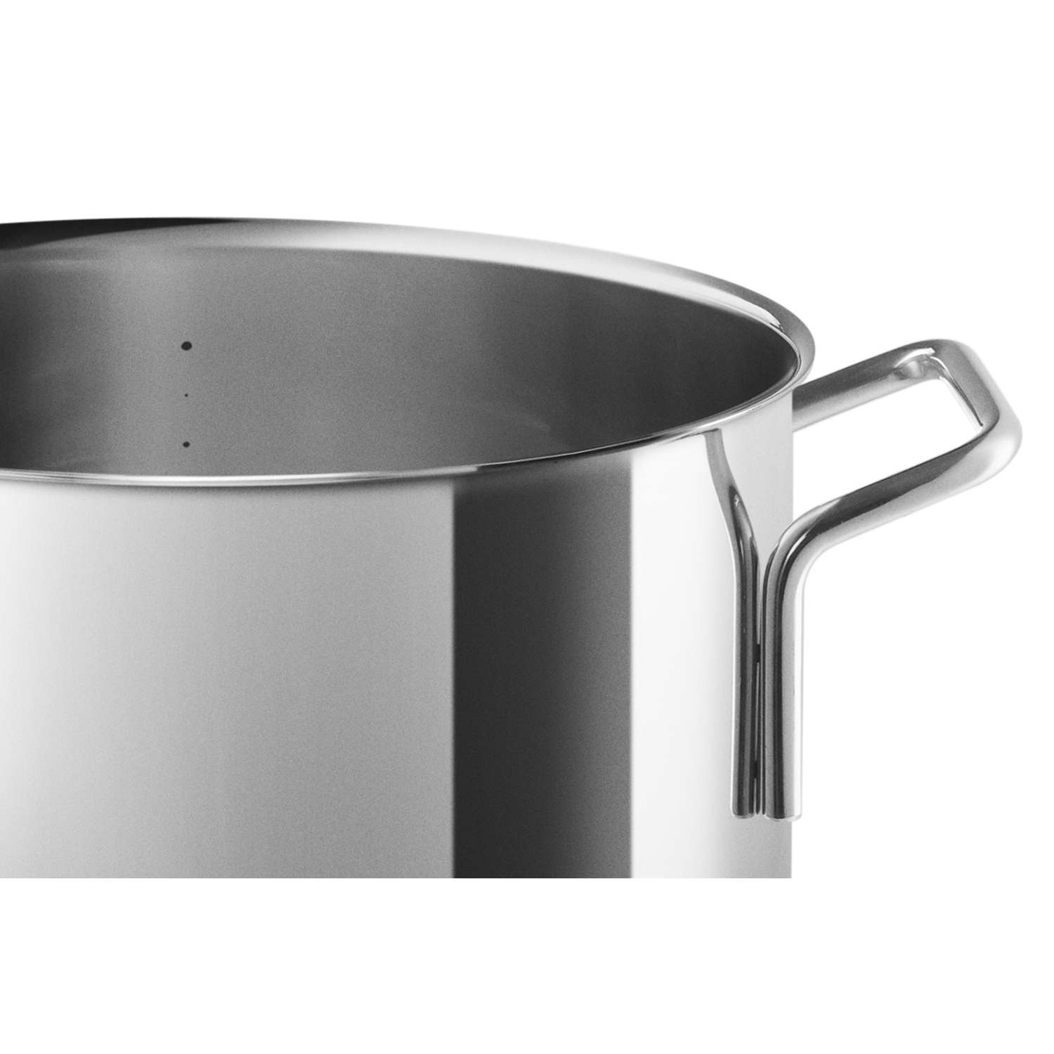 Every kitchen needs a durable stainless steel pot. The robust material withstands daily use, while the sealed-in sandwich base ensures even heat distribution. That's why the pot is the obvious choice when preparing one-pot dishes, cooking pasta or preparing vegetables for family meals. The body of the pot is made from 90% recycled post-consumer stainless steel and the design is based on the classic Ole Palsby/Eva Trio design from 1977, ensuring compatibility with existing Eva Trio lids. The pot is suitable for all types of heat sources and is dishwasher safe.