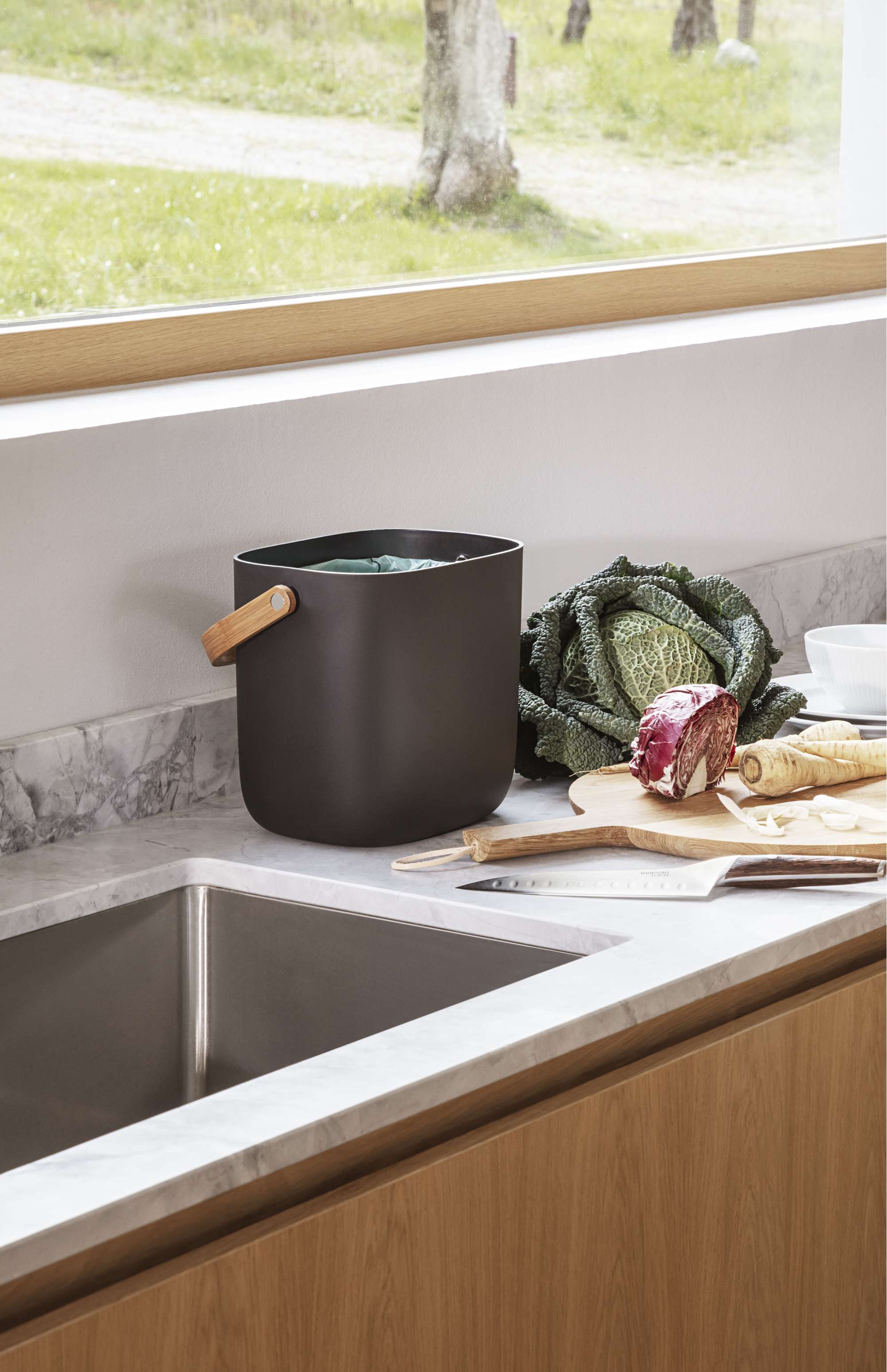 A household waste bin needn’t be either unstylish or hidden out of sight. The elegant Reflect waste separation bin can be kept out on show as part of your decor, while making it easier to keep your home neat and clean. The bins can be wall-mounted or stacked to save you space. The clever lid design makes it easy to keep the lid open when disposing of waste, as it automatically catches and balances on the rim of the bin. This waste bin also eliminates the need for special bin liners with its built-in bin liner retainer, which can quickly be adjusted to different bin liner sizes. The integral handles make it easy to move the waste separation bin, which is made of recycled plastic and bamboo.