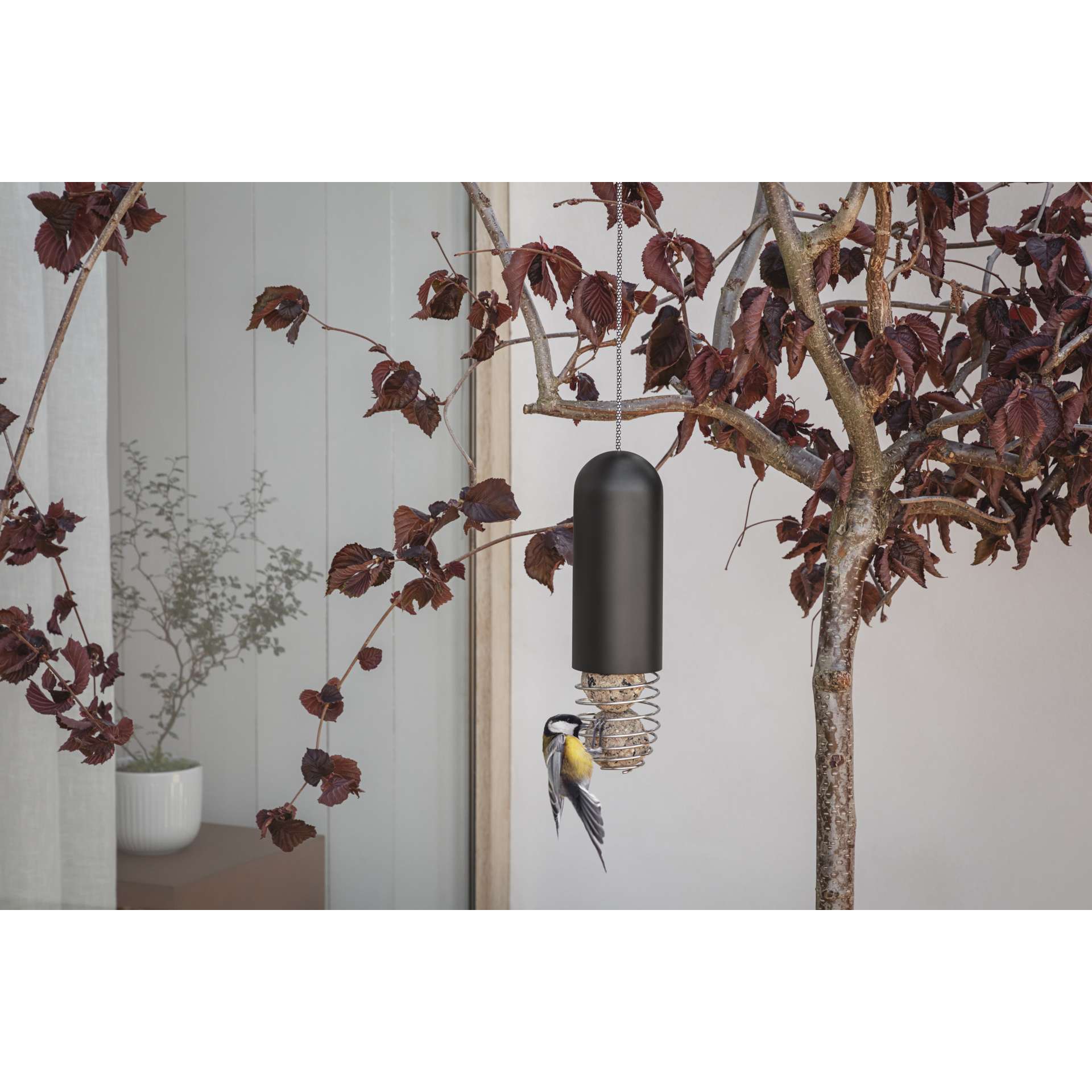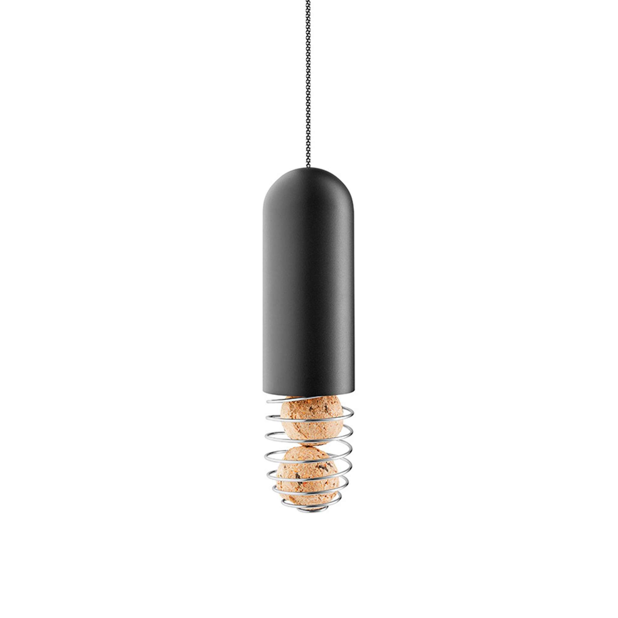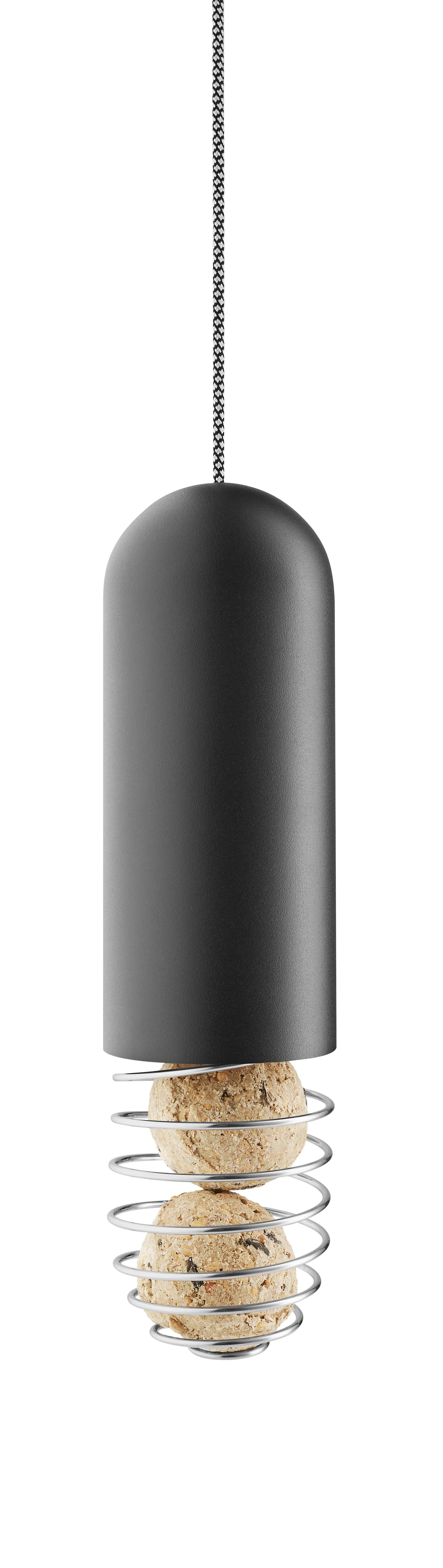 Invite small birds for a treat like seeded suet cakes or fat balls and serve them in a hanging bird feeder. The suet bird feeder gives the birds easy access to the food, and prevents large birds from snatching the treats. The bird feeder holder takes three suet fat balls, and it is easy to see when it needs refilling. To refill, simply lift the black top. Easy to attach using string to a tree or window eave so you can watch the busy birds.