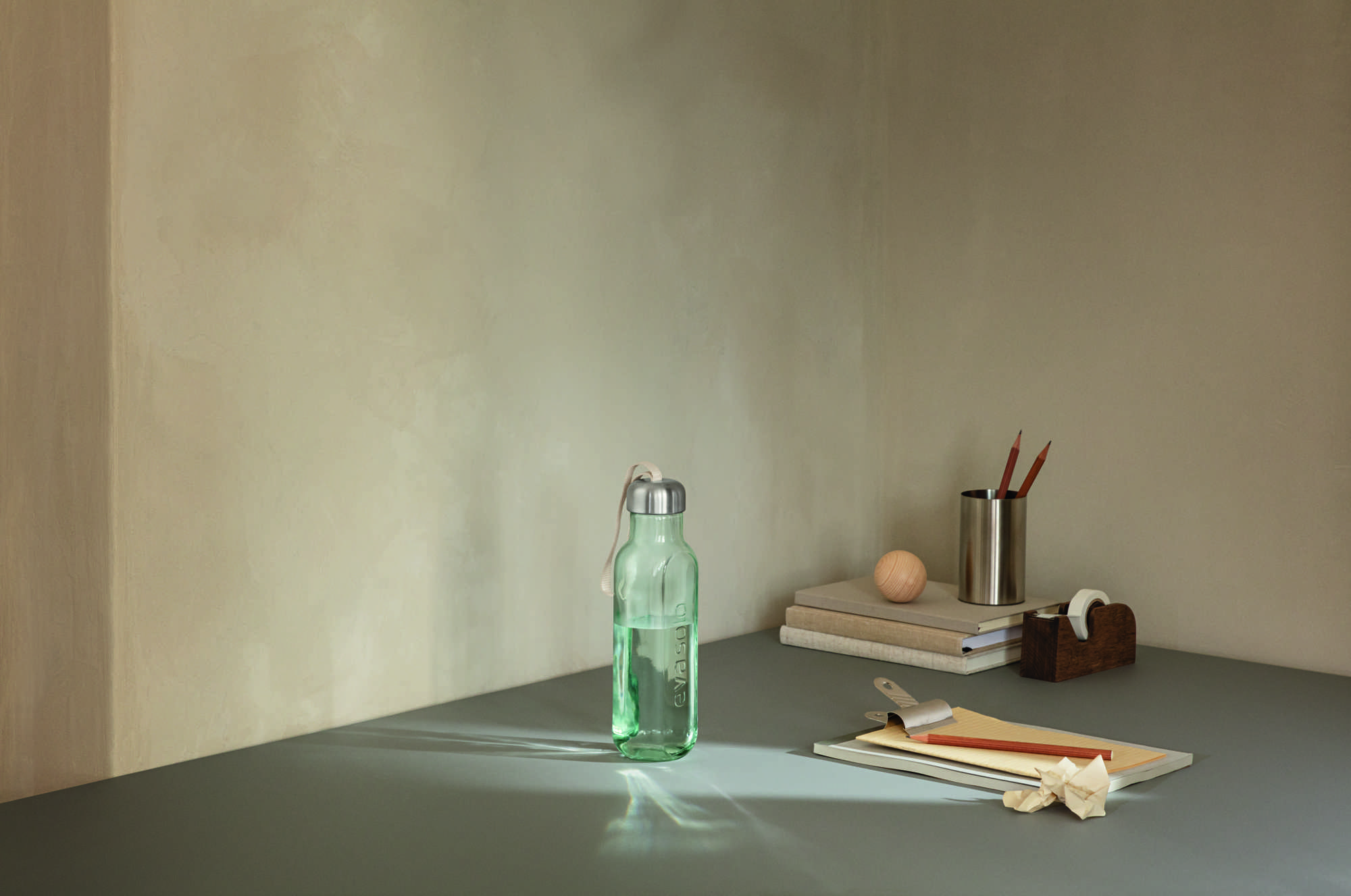 The Recycled glass drinking bottle is an easy way to conserve the planet’s resources. The bottle is made of 100% recycled glass. Recycled is a great alternative if you prefer not to drink from plastic or metal bottles. Recycled glass is a unique material, which makes each drinking bottle unique, and the practical carrying strap means it is easy to take with you on the go. The lid is tight-fitting, so you can carry the bottle with you in your bag. The glass bottle is dishwasher-safe, but the screw-top lid has to be washed by hand.