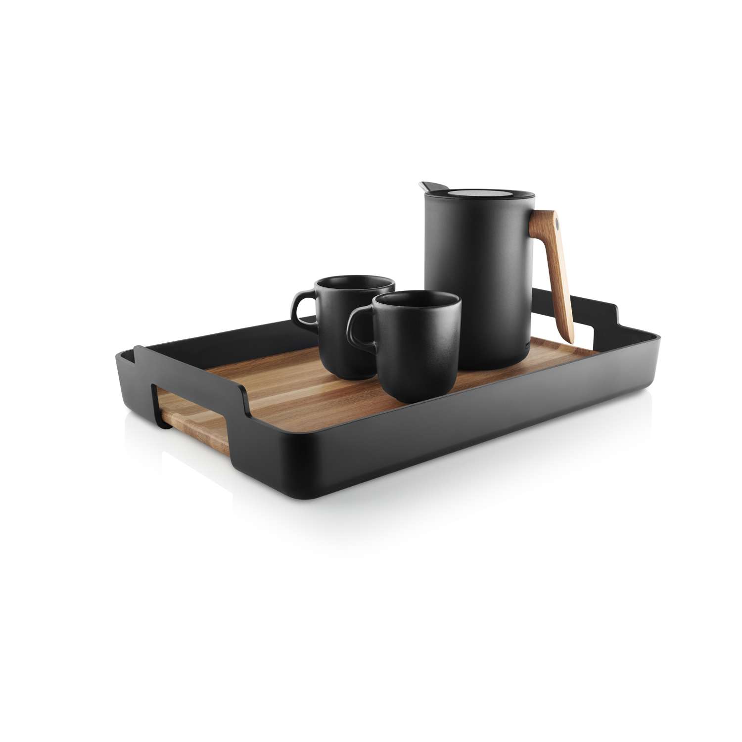 The stylish and practical Rectangular Serving Tray is ideal for serving everything from breakfast in bed to coffee in the living room. The capacious tray has high sides to ensure that the contents stay put, while the robust grab handles provide extra stability when the laden tray is moved. The FSC®-certified bamboo provides a natural look, while the matt black finish adds a touch of contemporary elegance. The fine design also allows the tray to be used as a decorative accent for displaying ornaments, candlesticks and floral arrangements.