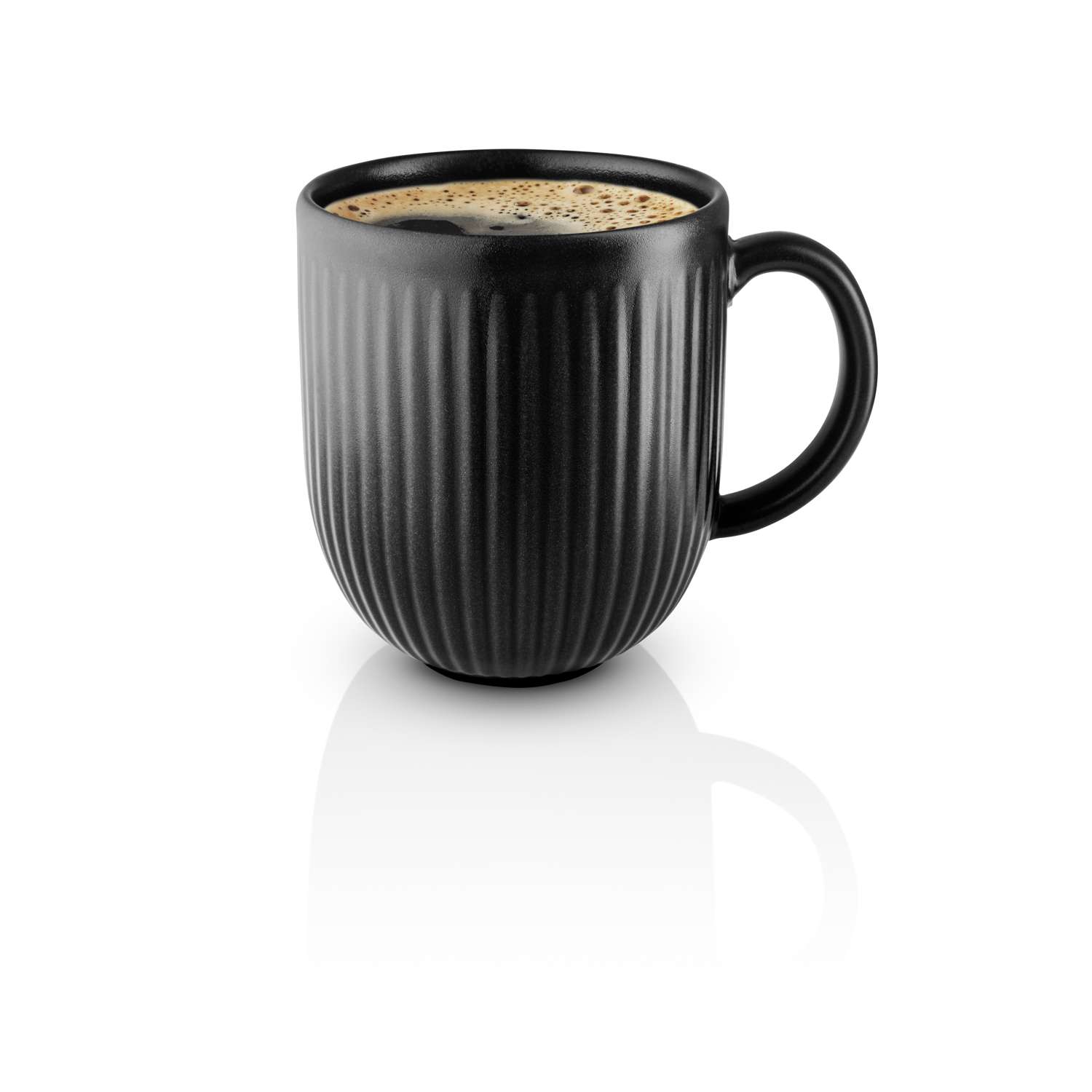 Enjoy your favourite hot beverage. This charming cup is ideal for morning coffee or afternoon tea. Legio Nova Black reinterprets the popular Legio Nova tableware with a matt black finish inspired by rustic Nordic cuisine. With its dark colourscape and distinctive grooves, this tableware adds an intriguing contrast and depth to any table setting. The stoneware is of the highest quality and is oven-safe, freezer-safe, microwave safe and dishwasher-safe.