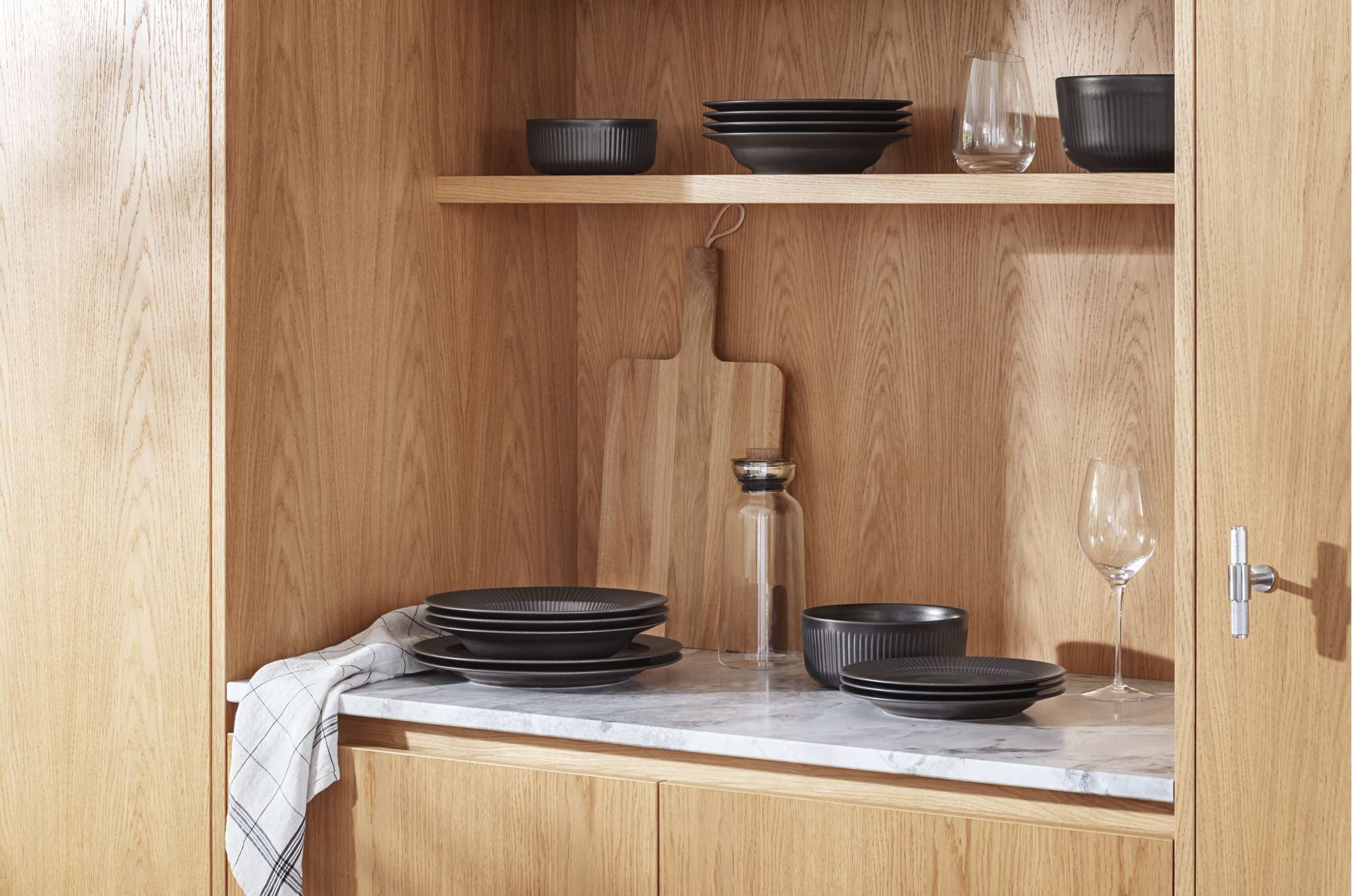 The deep plate is ideal for liquid-rich servings of soups, salads or pasta and rice dishes. The raised rim ensures that the food stays on the plate. Legio Nova Black reinterprets the popular Legio Nova tableware with a matt black finish inspired by rustic Nordic cuisine. With its dark colourscape and distinctive grooves, this tableware adds an intriguing contrast and depth to any table setting. The stoneware is of the highest quality and is oven-safe, freezer-safe, microwave safe and dishwasher-safe.