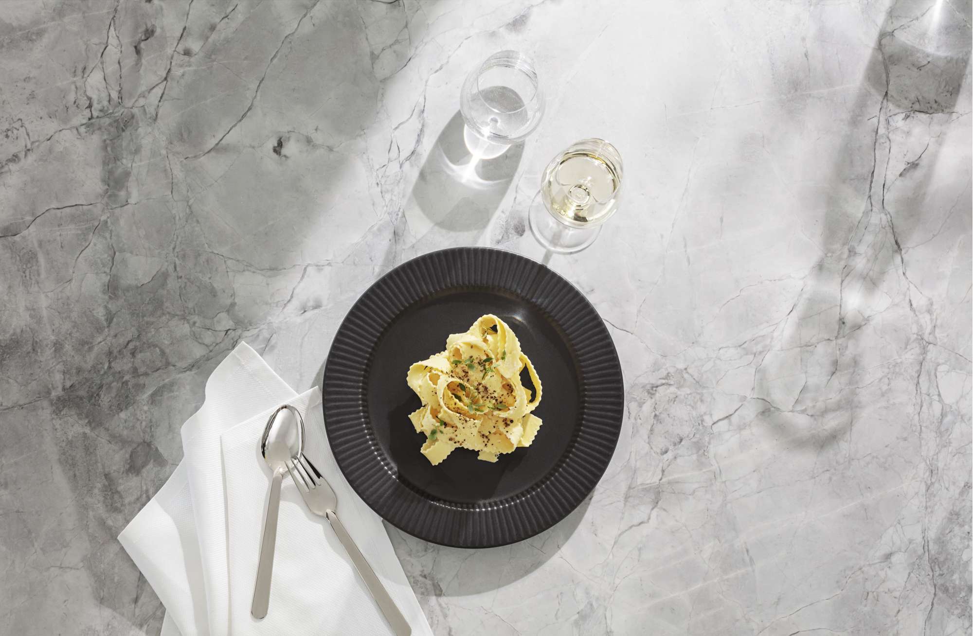A new interpretation of the popular Legio Nova tableware in a beautiful, striking dark shade.