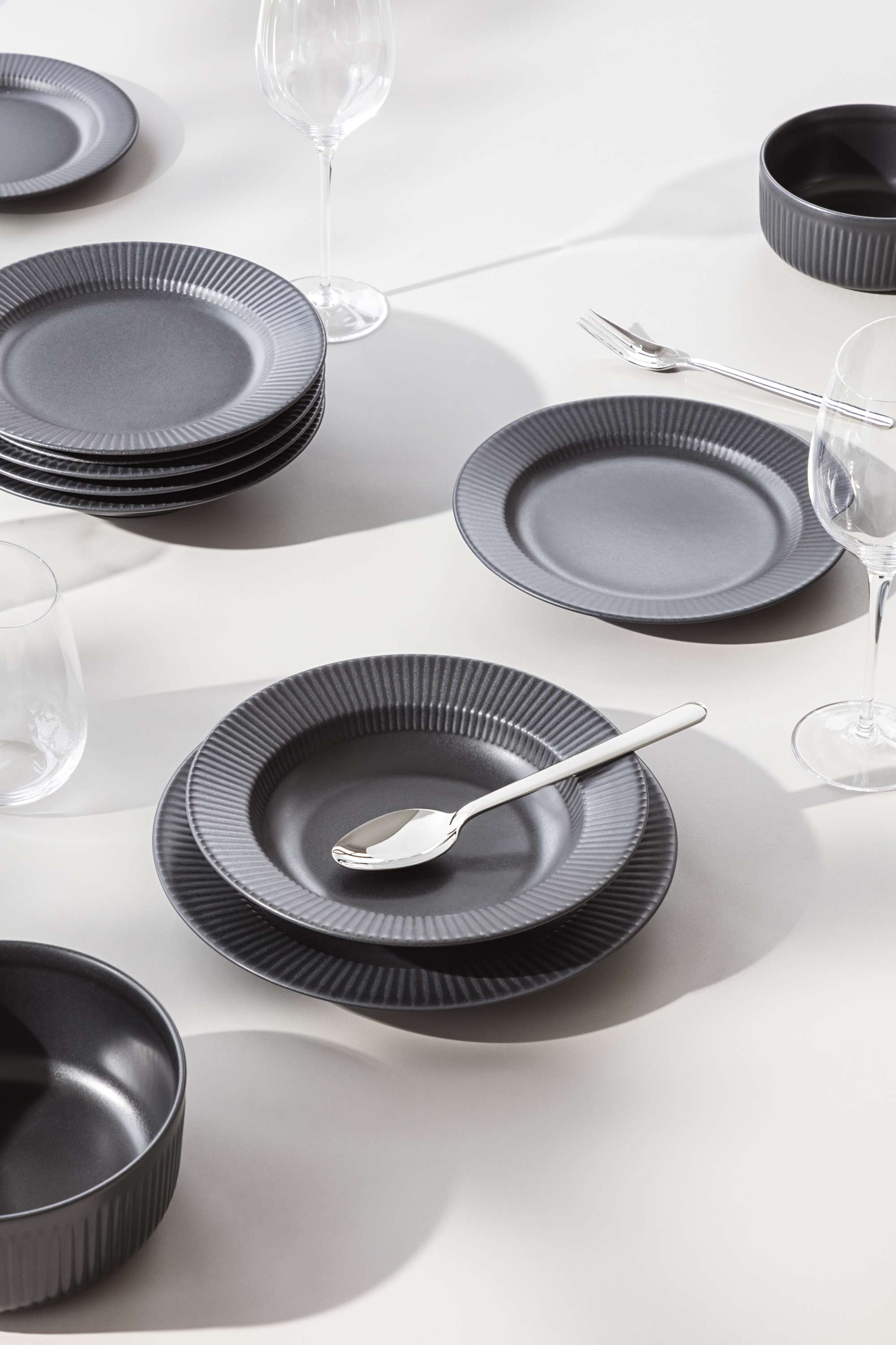A new interpretation of the popular Legio Nova tableware in a beautiful, striking dark shade.
