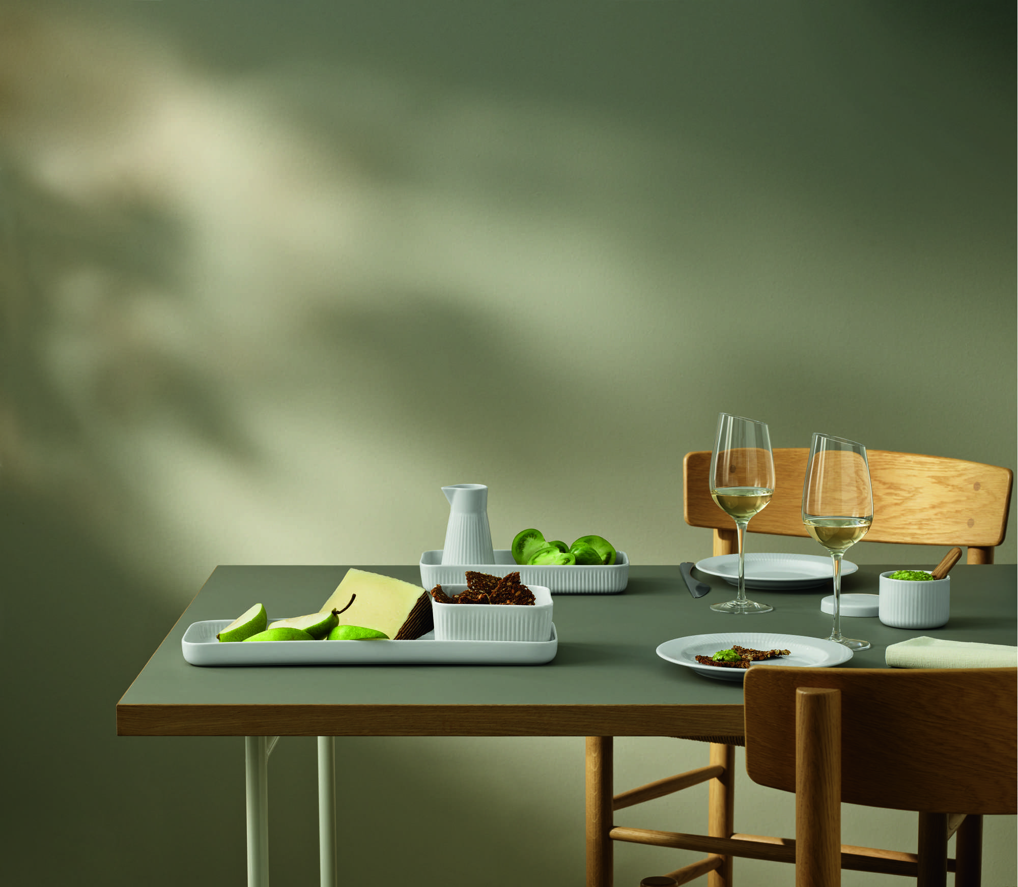 The dish can be combined with and even stacked inside the 37x13 cm rectangular Legio Nova serving dish.
