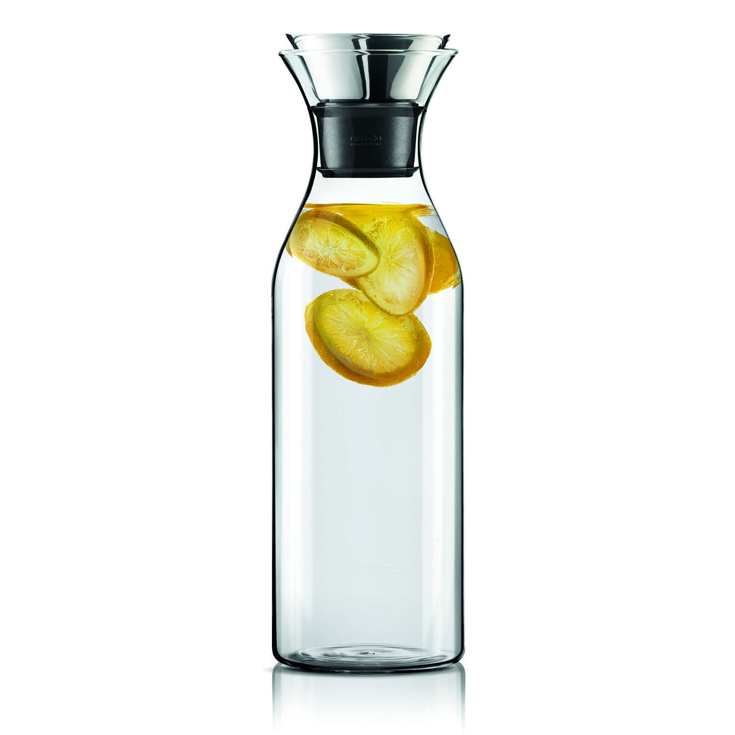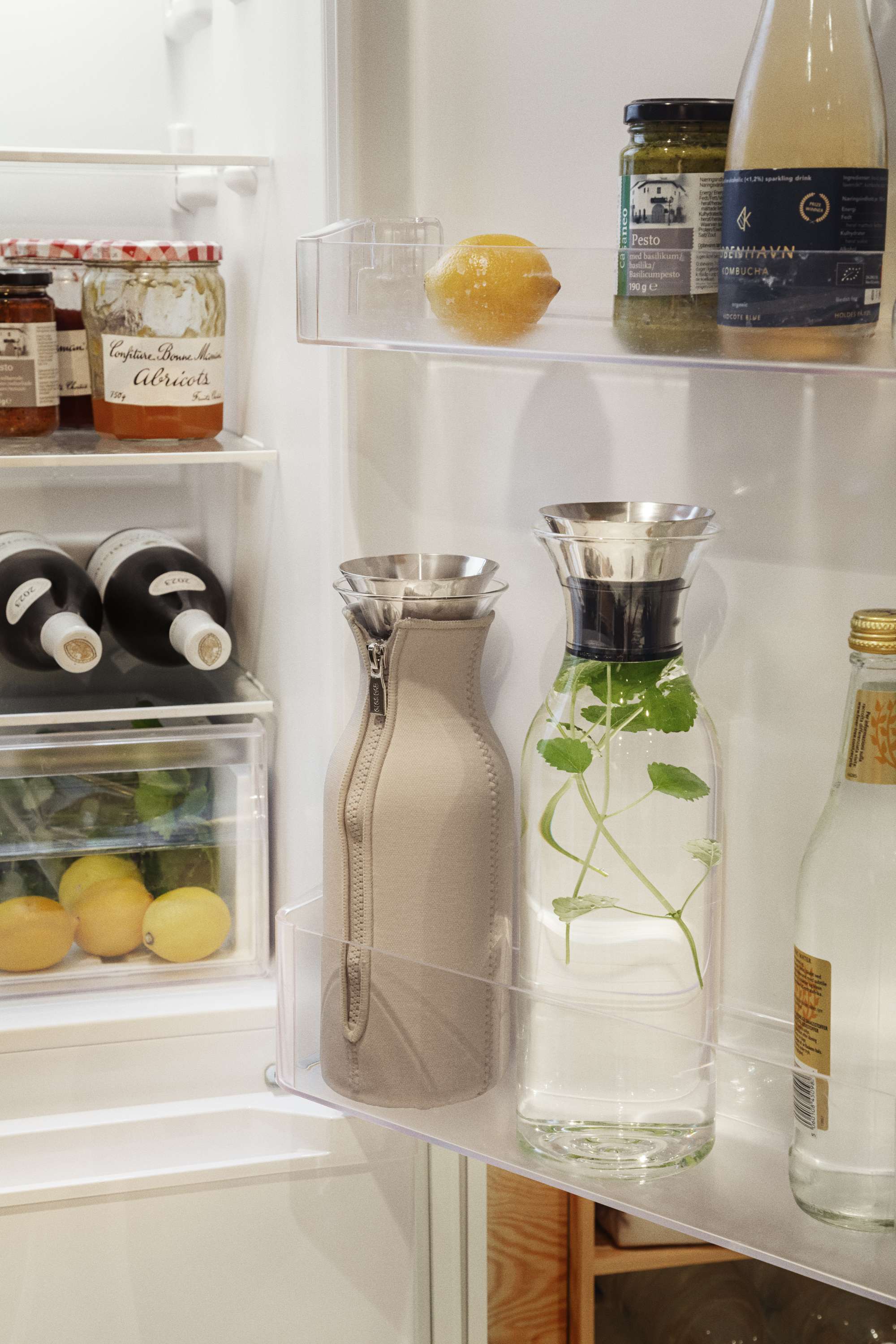 The carafe fits most fridge doors. It is suitable for both hot and cold drinks. The patented stainless steel and silicone pouring lip ensures that the carafe is 100% drip-free – the contents end up in your glass, not on the tablecloth. The accompanying tip-up lid opens automatically.
