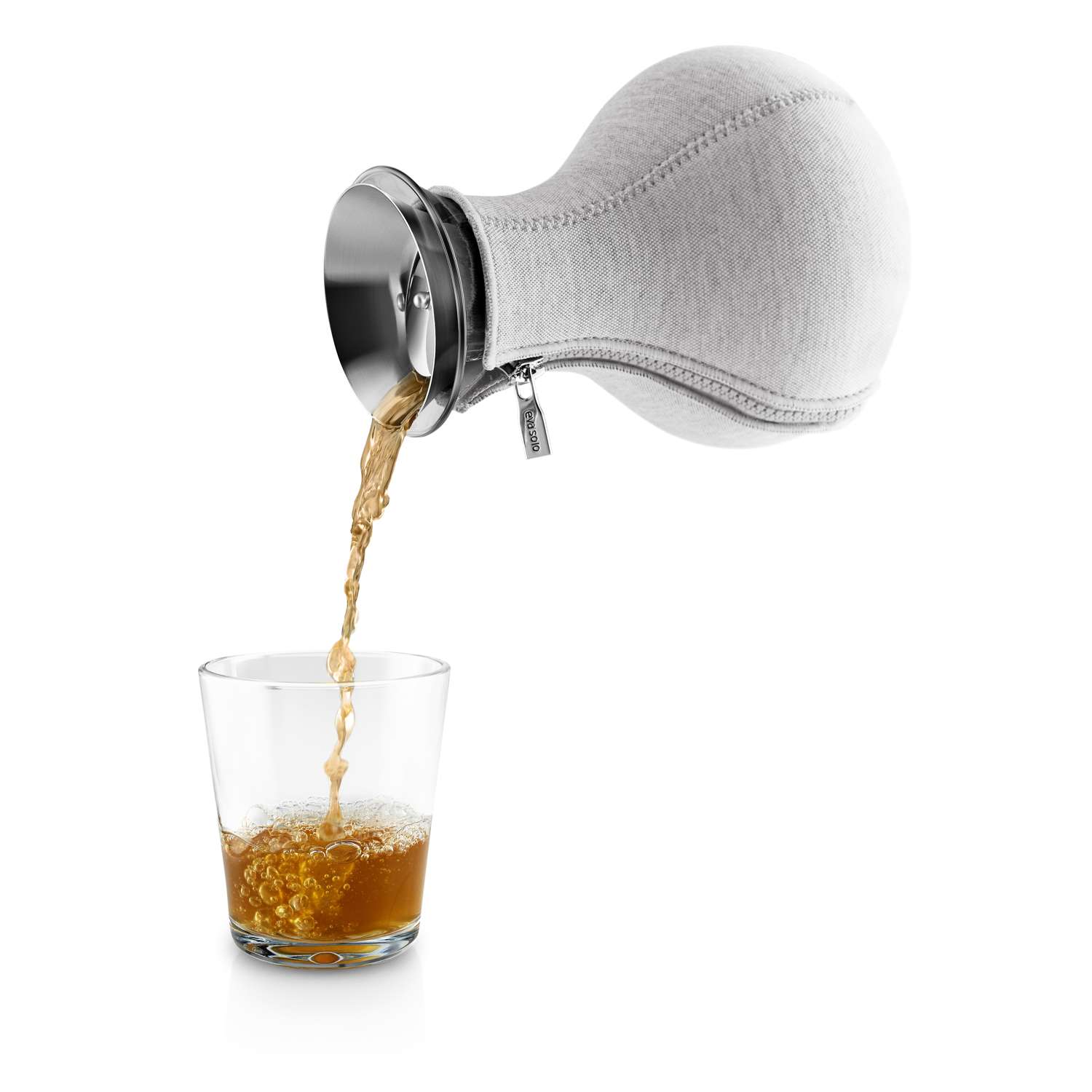 Spoon tannin-free tea leaves that can brew indefinitely directly into the glass flask. Insert the filter and the leaves stay in the flask when you pour. For tea that only needs to brew for a few minutes, spoon the leaves into the filter instead. Fully depress the plunger after brewing and pour - it is not necessary to remove the tea leaves or the filter. The tea maker is drip free and has a tip-up lid that automatically opens when you pour. The neoprene cover keeps your tea nice and warm.
