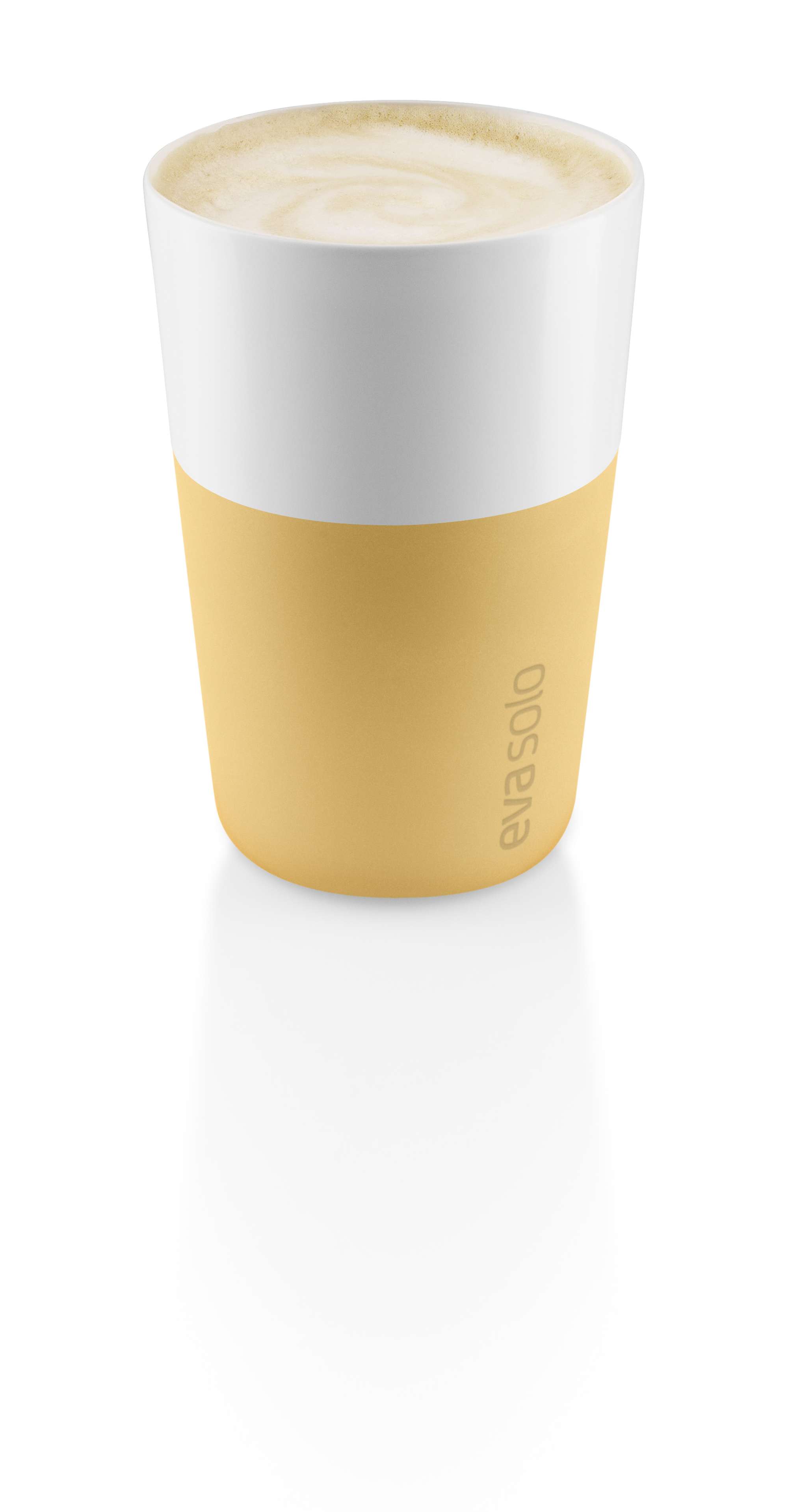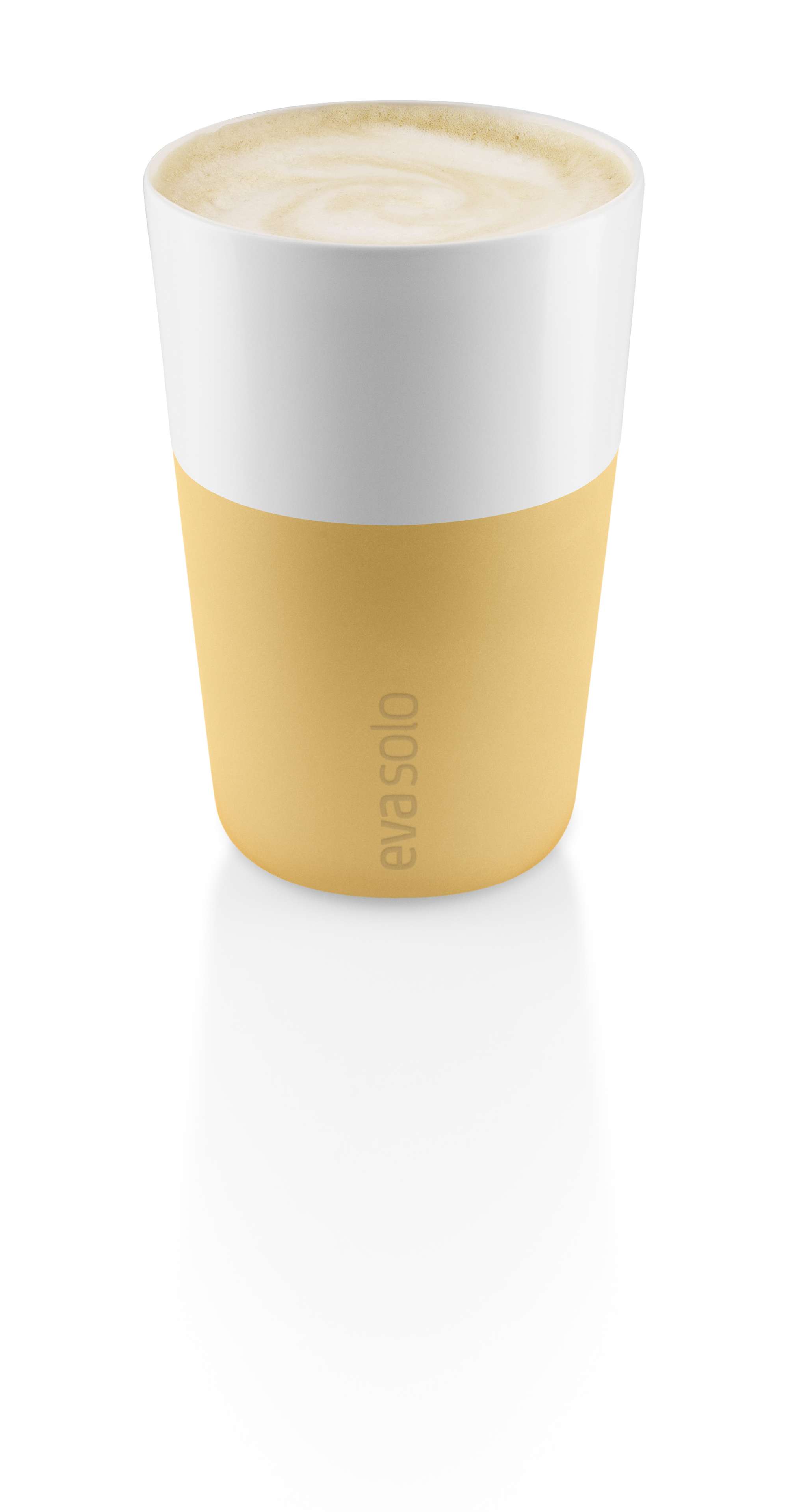 The café latte tumbler from Eva Solo holds 36 cl of coffee with a frothy milk topping, which corresponds exactly to the standard settings on many of the popular pod coffee machines. The tumbler is made of porcelain with a silicone sheath, which ensures a good grip while preventing burnt fingers. The tumbler dishwasher-safe; however, the silicone sheath needs removing from the tumbler before placing both parts in the dishwasher.