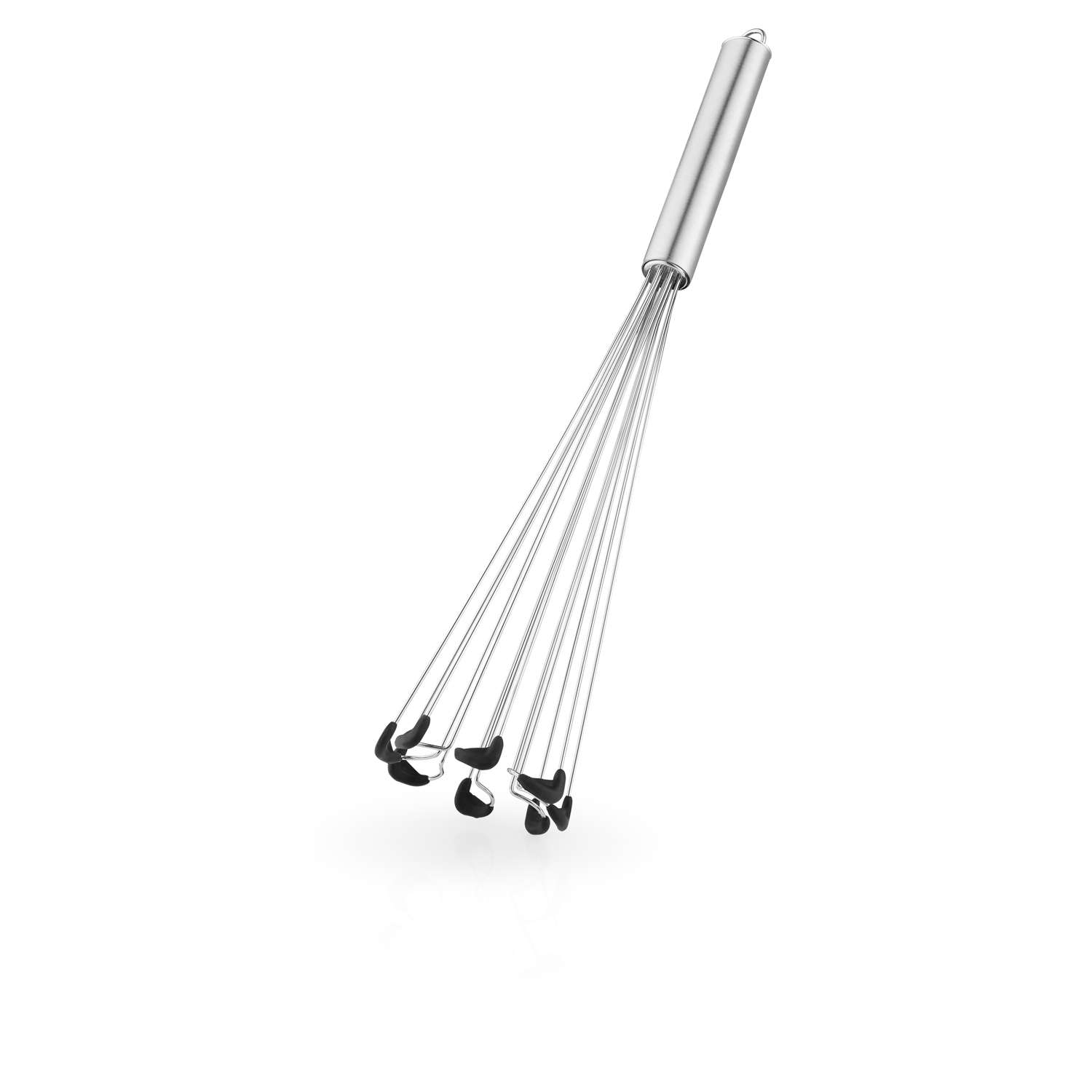 Vispen er belagt med silikon og kan derfor brukes i gryter og panner med alle typer belegg.