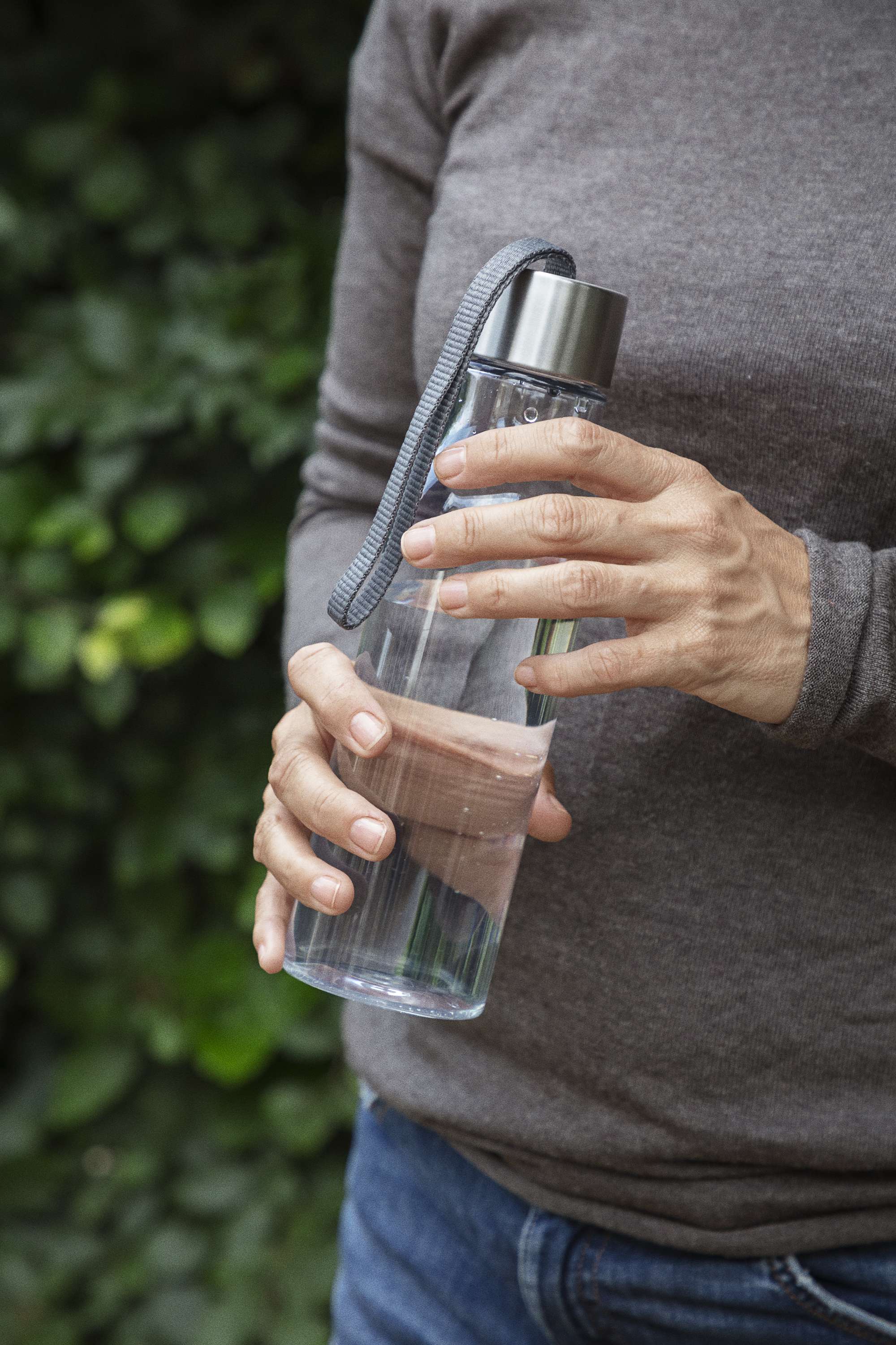 Lett og robust drikkeflaske fremstilt av 100 % gjenbrukt post-consumer plast. Med en kapasitet på 0,5 liter og et kompakt design passer den perfekt i vesken, koppholderen eller piknikkurven. Skrulokket i rustfritt stål er helt tett slik at du unngår lekkasjer og våte uhell, mens den praktiske bærestroppen gjør det lett å ta flasken med på farten. Merk at flasken ikke tåler oppvaskmaskin.